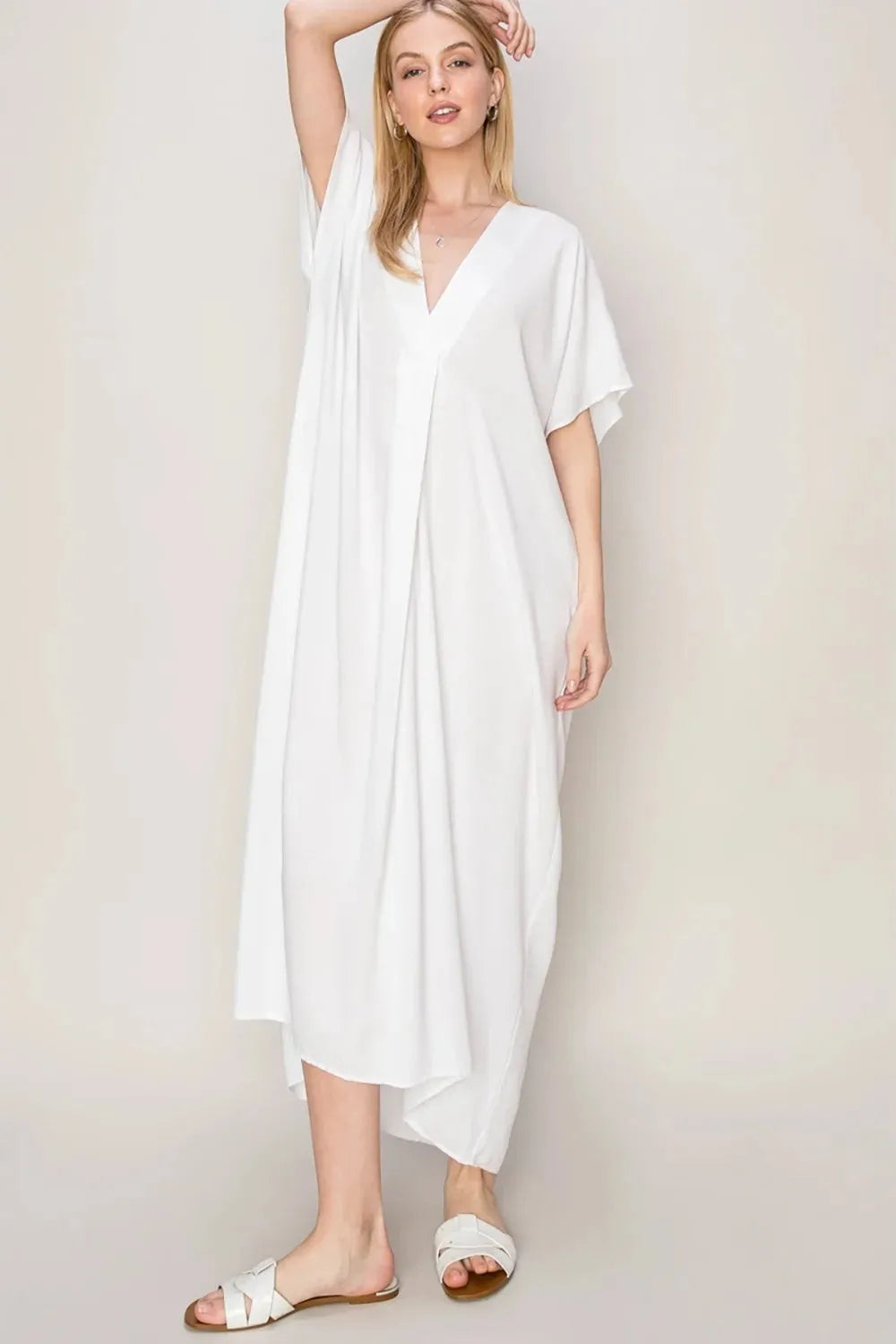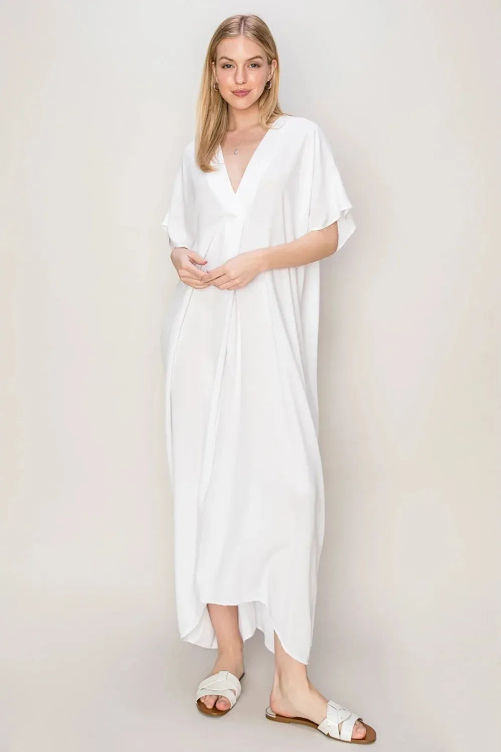 Breezy Elegant V-Neck Dolman Sleeves Beach Coverup Kaftan Dress