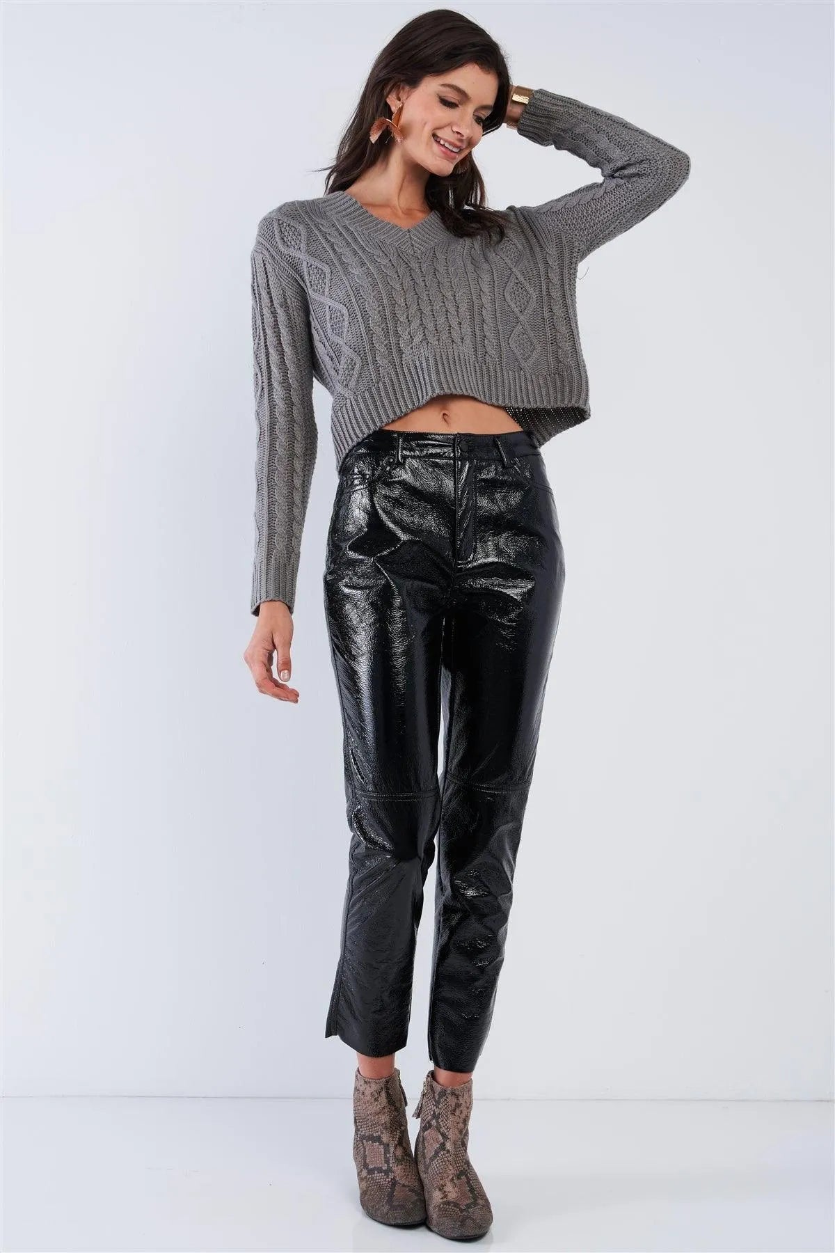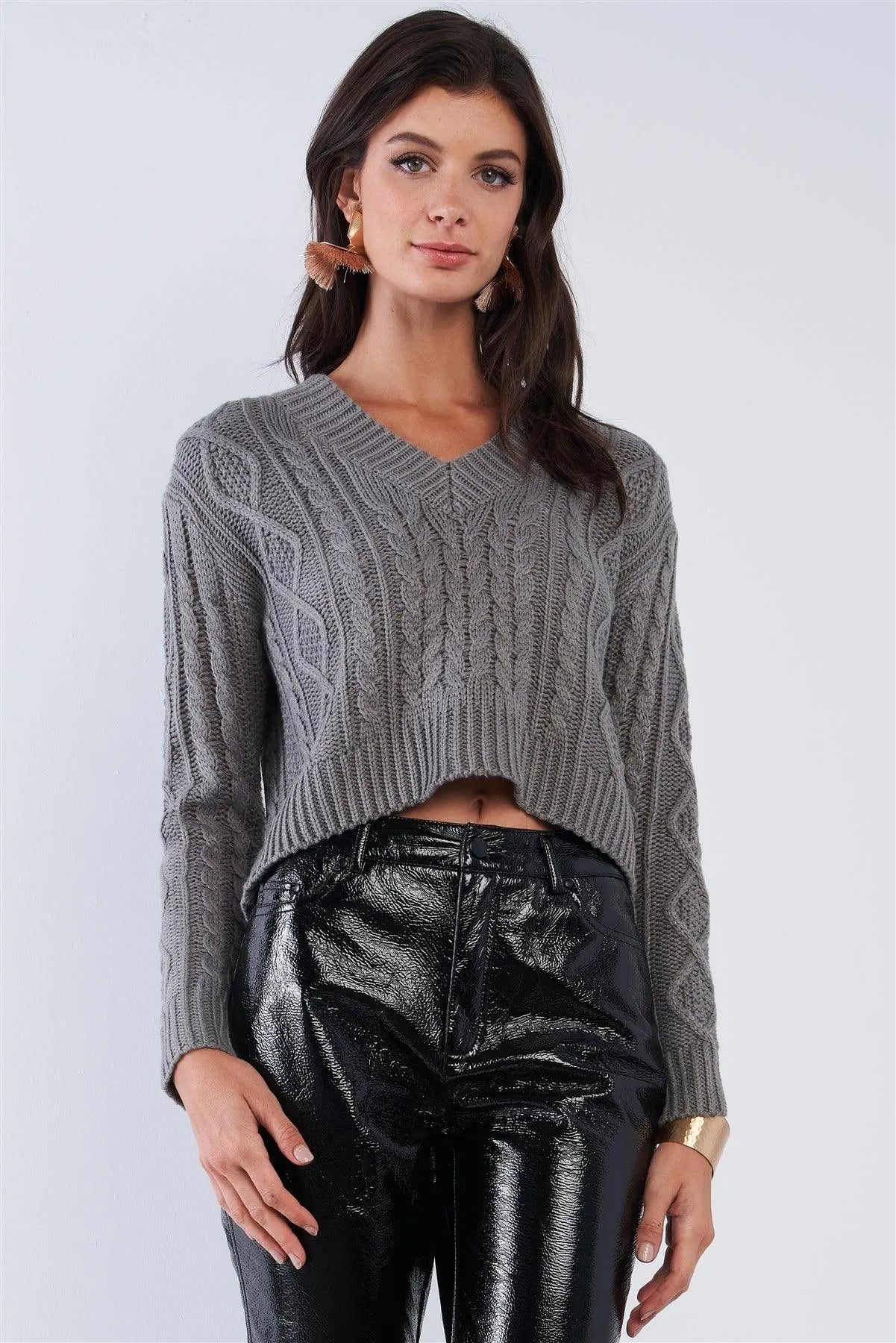 Cropped V-Neck Long Sleeve Soft Knit Cozy Boutique Fashion SweaterVendor:DOUBLE ZERO