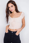 Top features: off-the-shoulder, elastic ruche, adjustable middle bow tie, elastic frill cap sleeve, round neckline, crop length, boho chic, vintage, classic, solid, washed, unlined, super stretchy. Item Measurements: Length: 16.5" Bust 32"Model is 5'9" and wearing a Small (Waist: 24", Bust: 33B", Hips: 36")True to size Also available in Dusty Rose