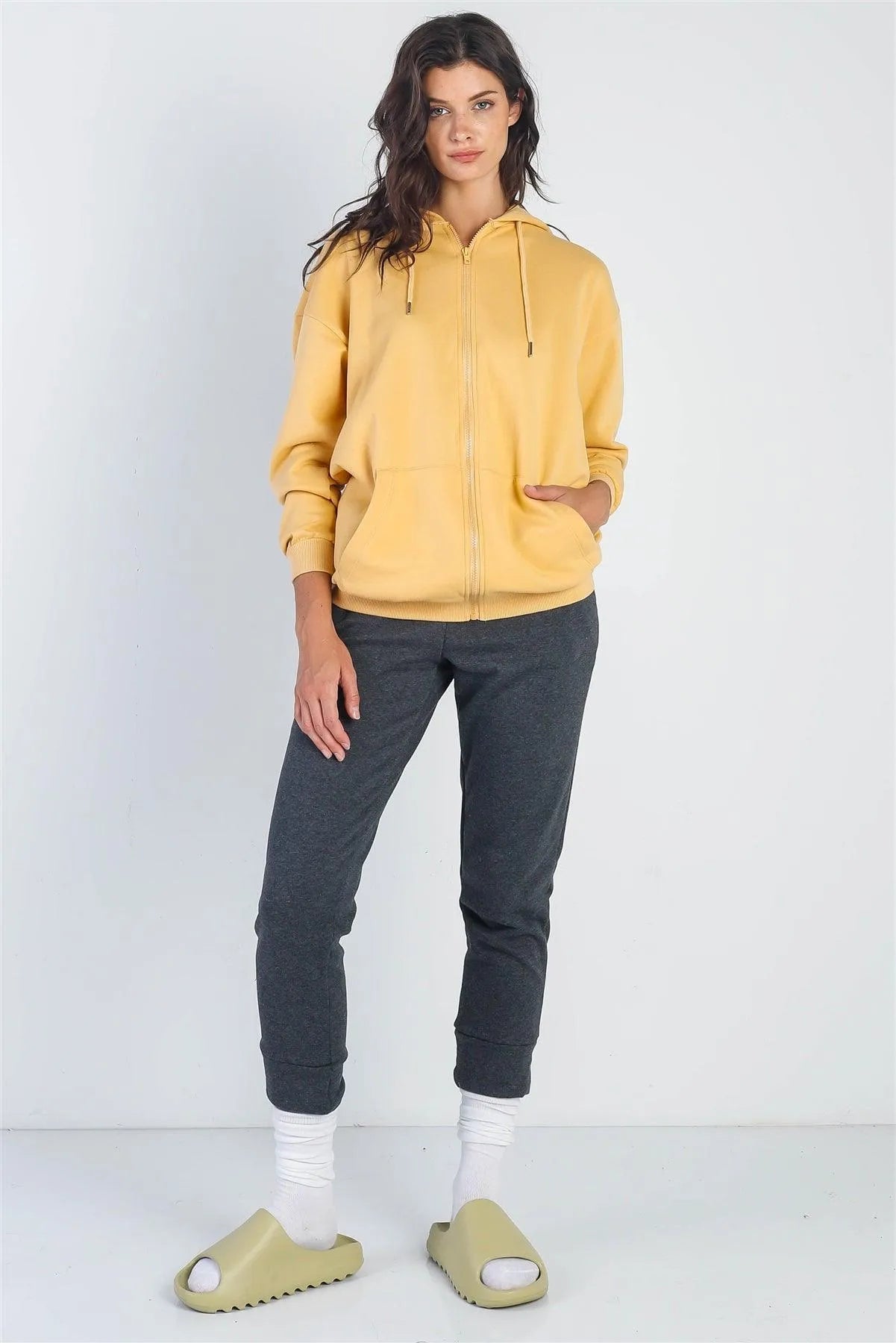 Vanilla Zip-Up Two Pocket Hooded Long Sleeve Sweatshirt