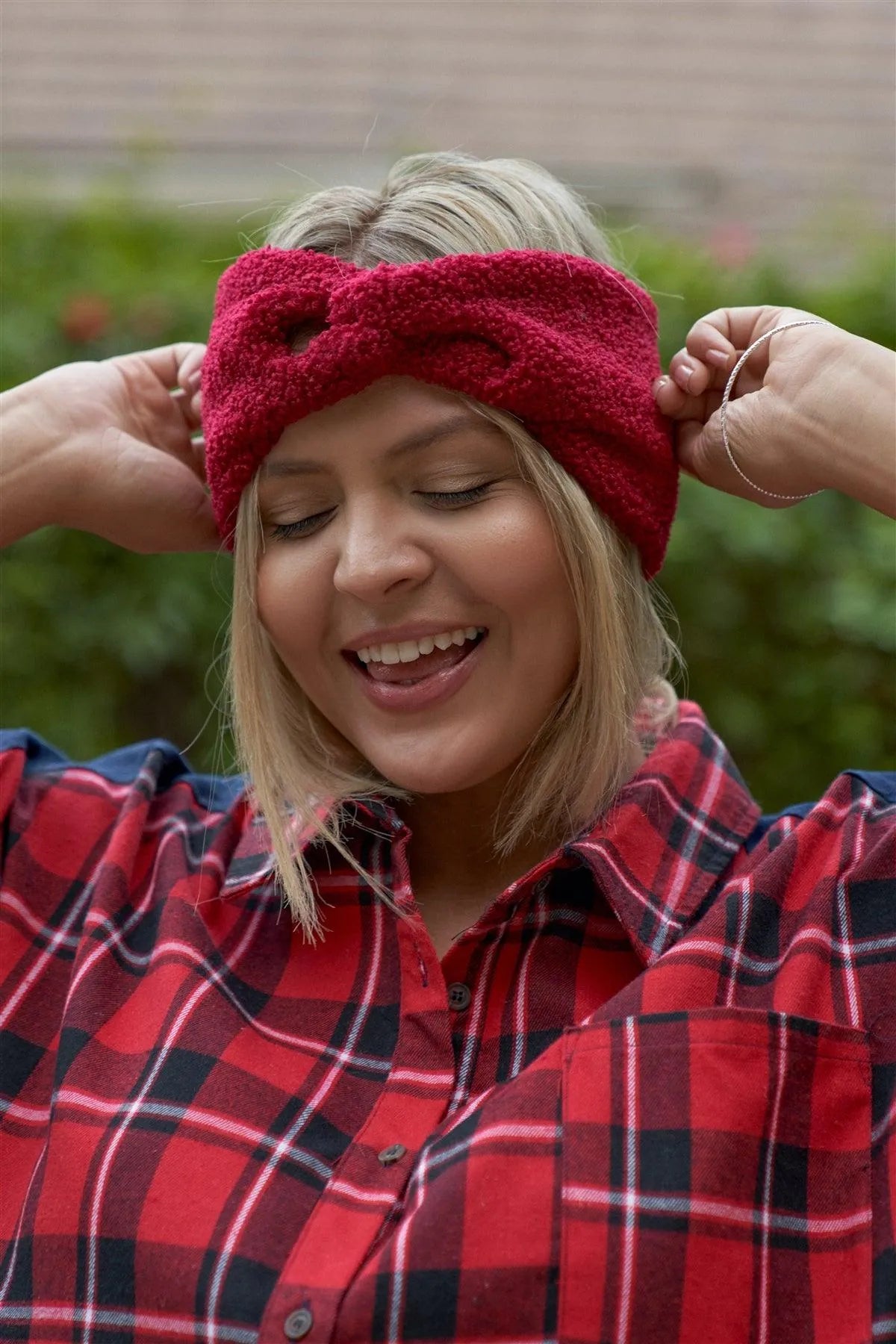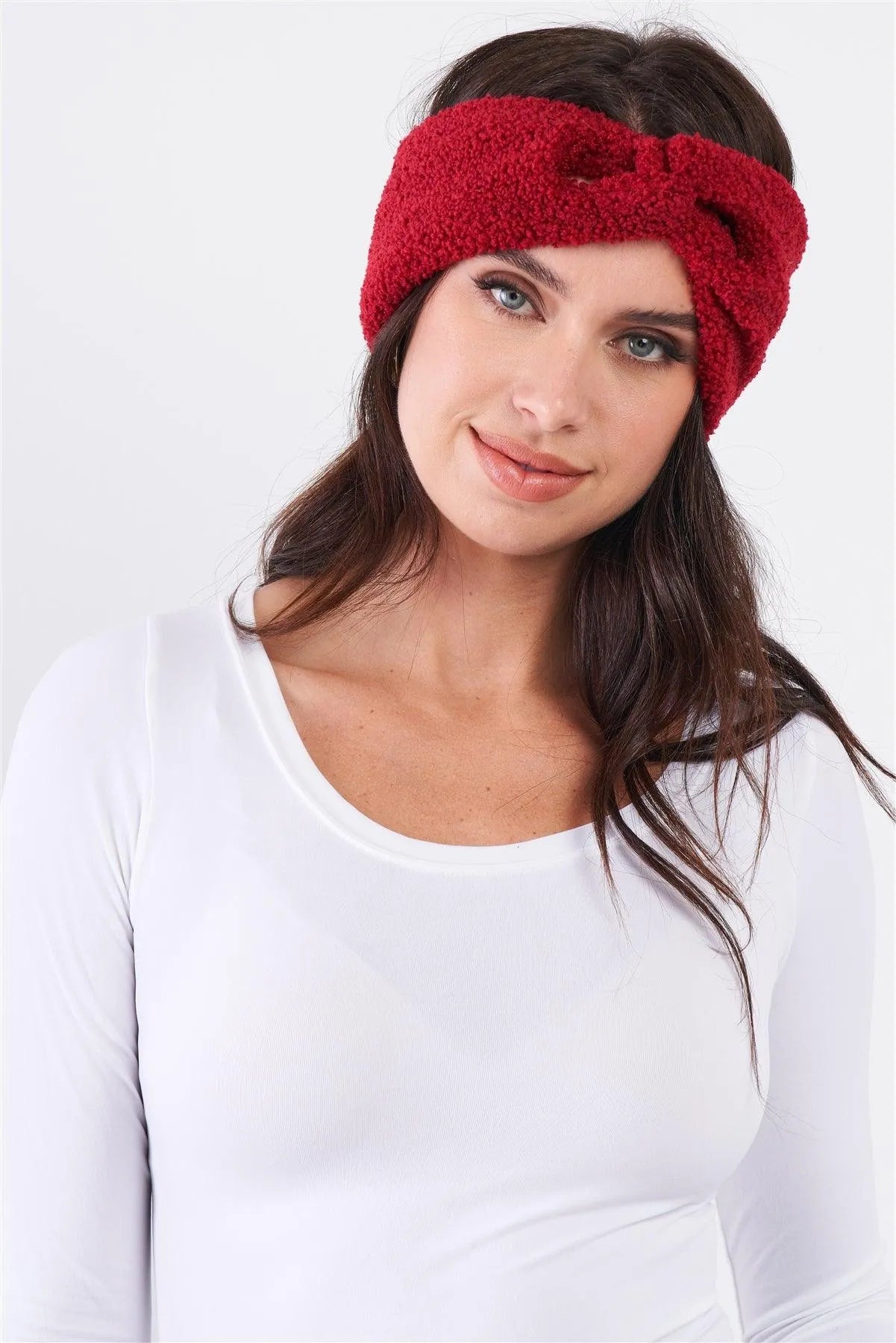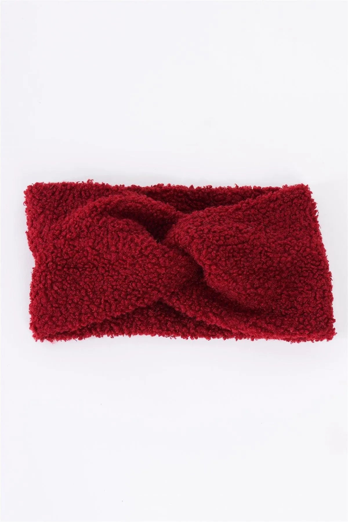 3pcs Burgundy Faux Shearling Fur Turban Twist Headband