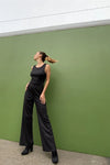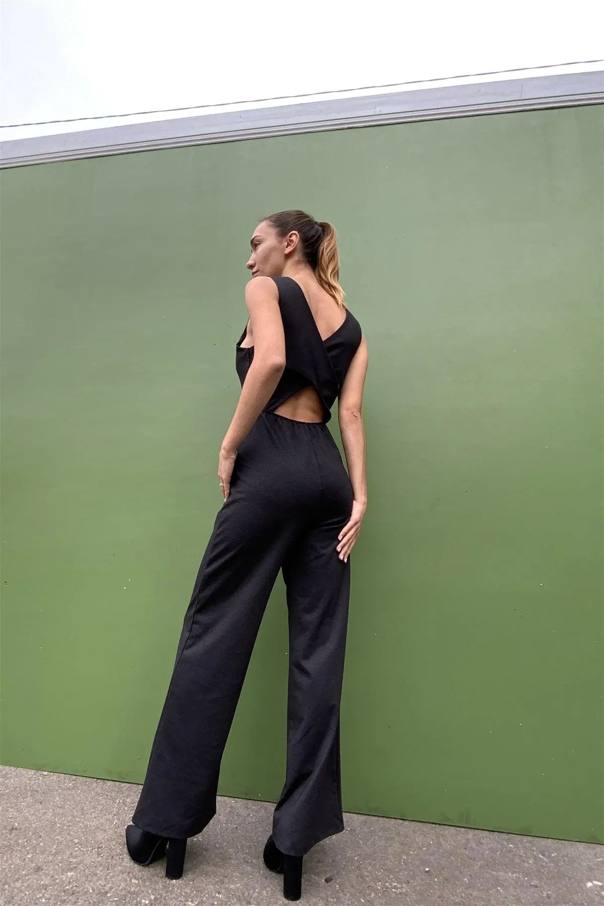 🖤Item features: Washed black, solid, sleeveless, round neckline, criss-cross back detail, elasticized waist, wide leg, unlined, stretchy, maxi length, office wear, elegant, strict, comfy, stylish, fall/winter collection