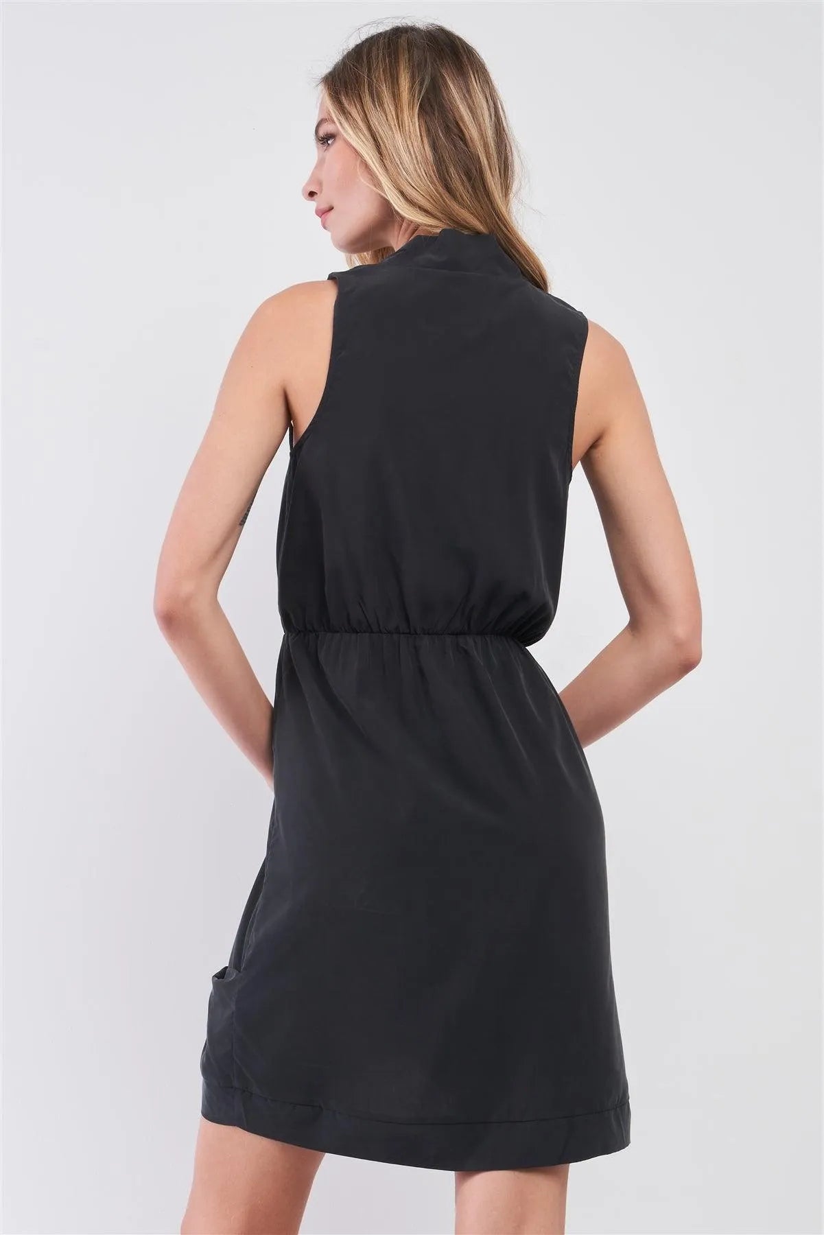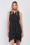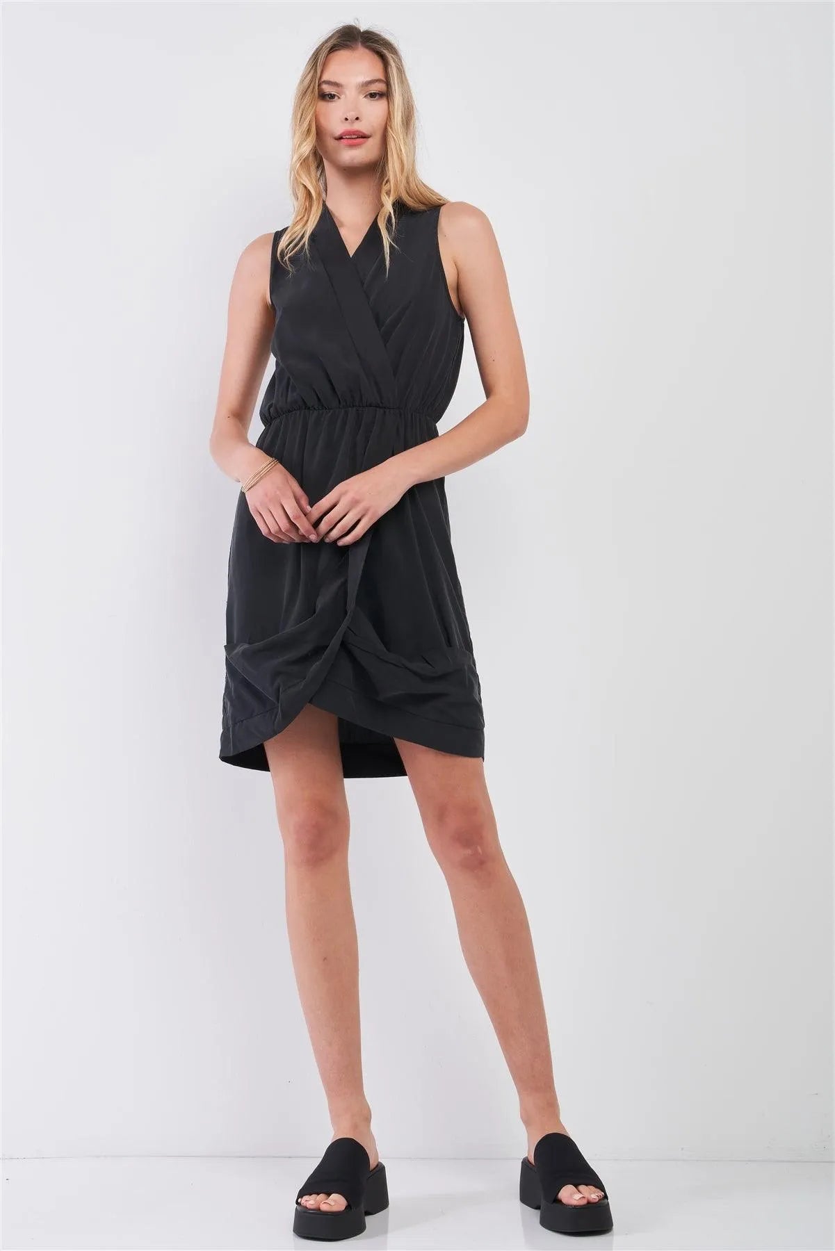 Washed Black Wrap Sleeveless V-Neck Mini Dress /1-3-1