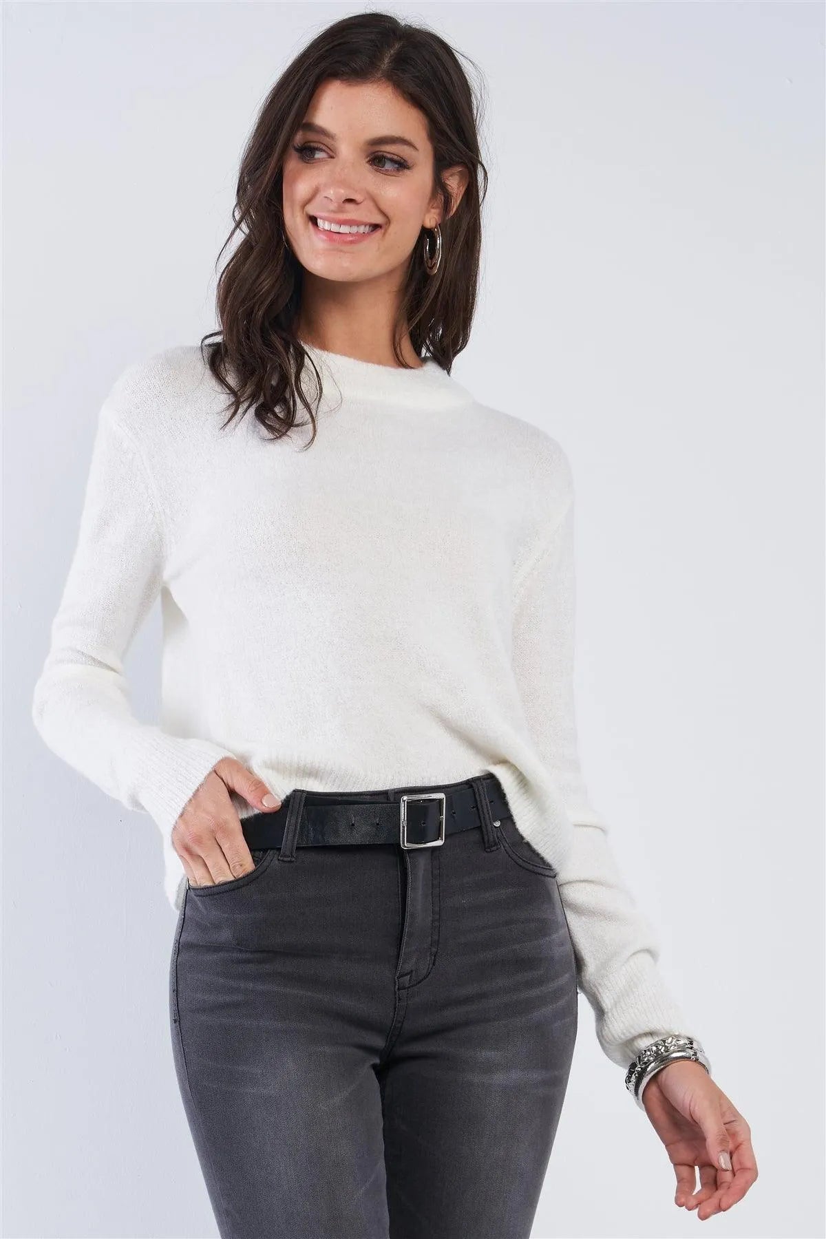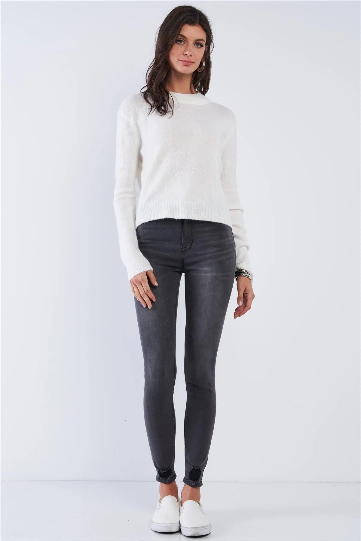 🖤 Item features: White, solid, crew neck, long sleeve, ribbed hem, super soft touch, unlined, open back, angel wing cut, stretchy, fall, winter, cozy, casual