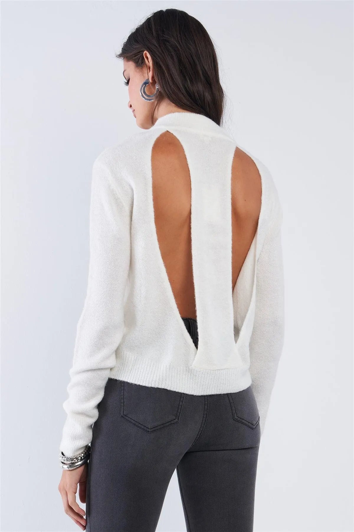 Whip Cream Cashmere Cozy Open Back Angel Wing Cut Long Sleeve Soft Sweater /4-2