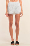 White Boho Crochet High Wasted Lined Mini Shorts /1-2-2