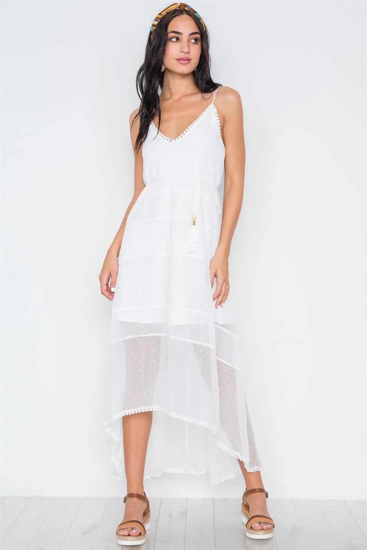 White Chiffon High-Low Cami Midi Boho Dress /1-1-2-1