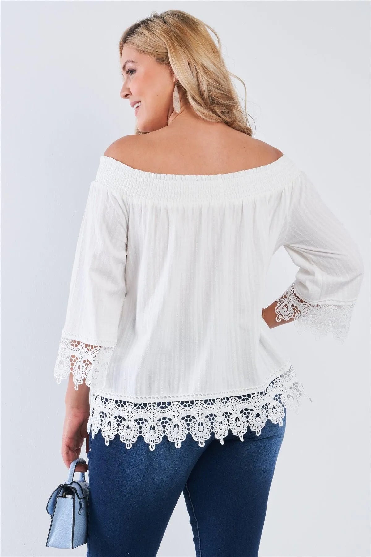 White Cotton Off-The-Shoulder Lace Trim Boho Chic Top