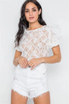 White Floral Lace Mash Sleeves Sheer Top /2-2-2