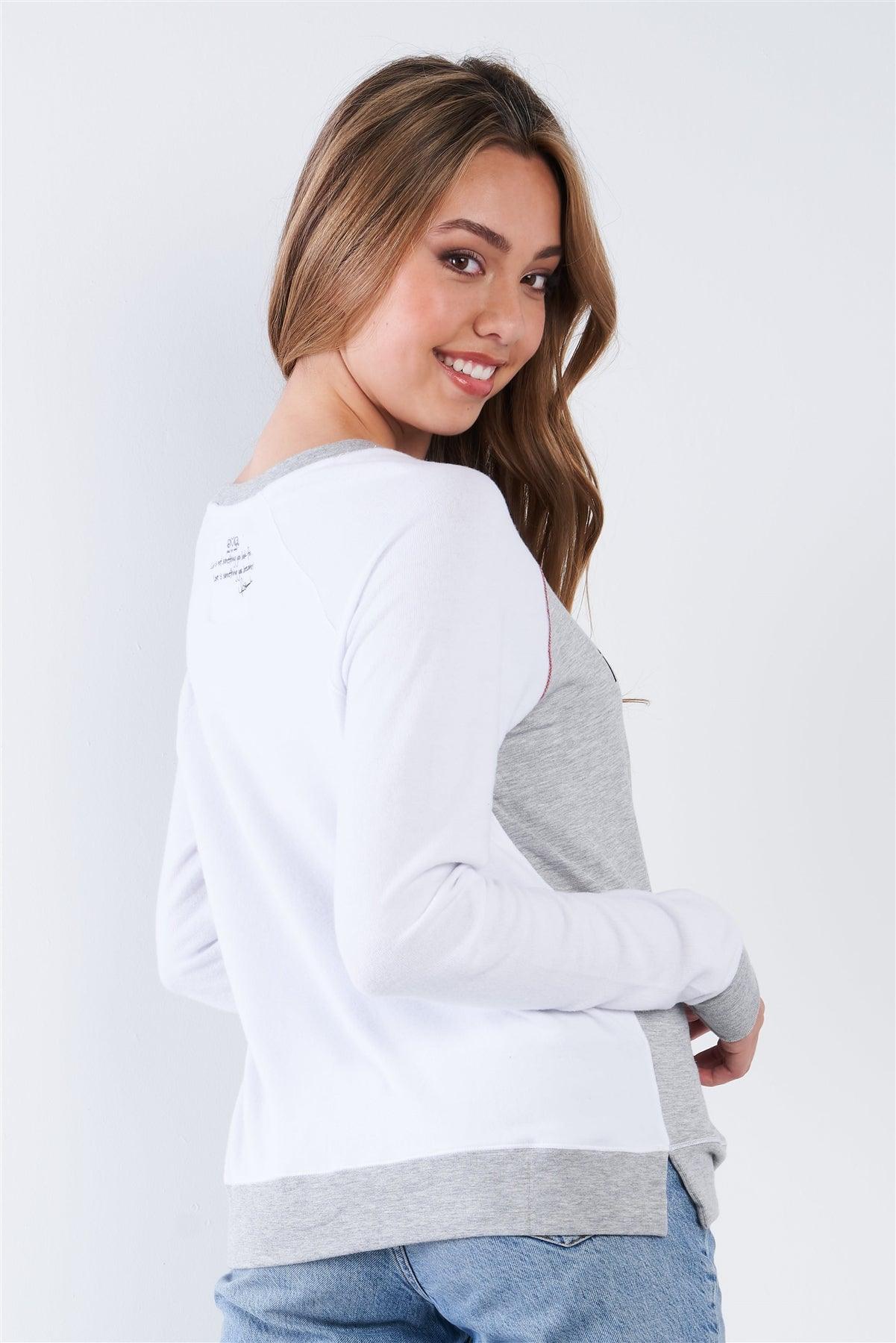 White Heather Long Sleeve "I Believe In The Power Of Love" Comfy Crew Neck Top