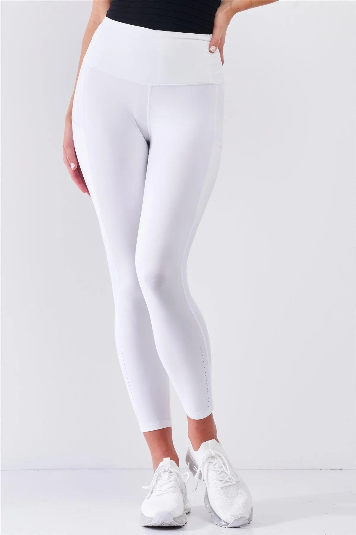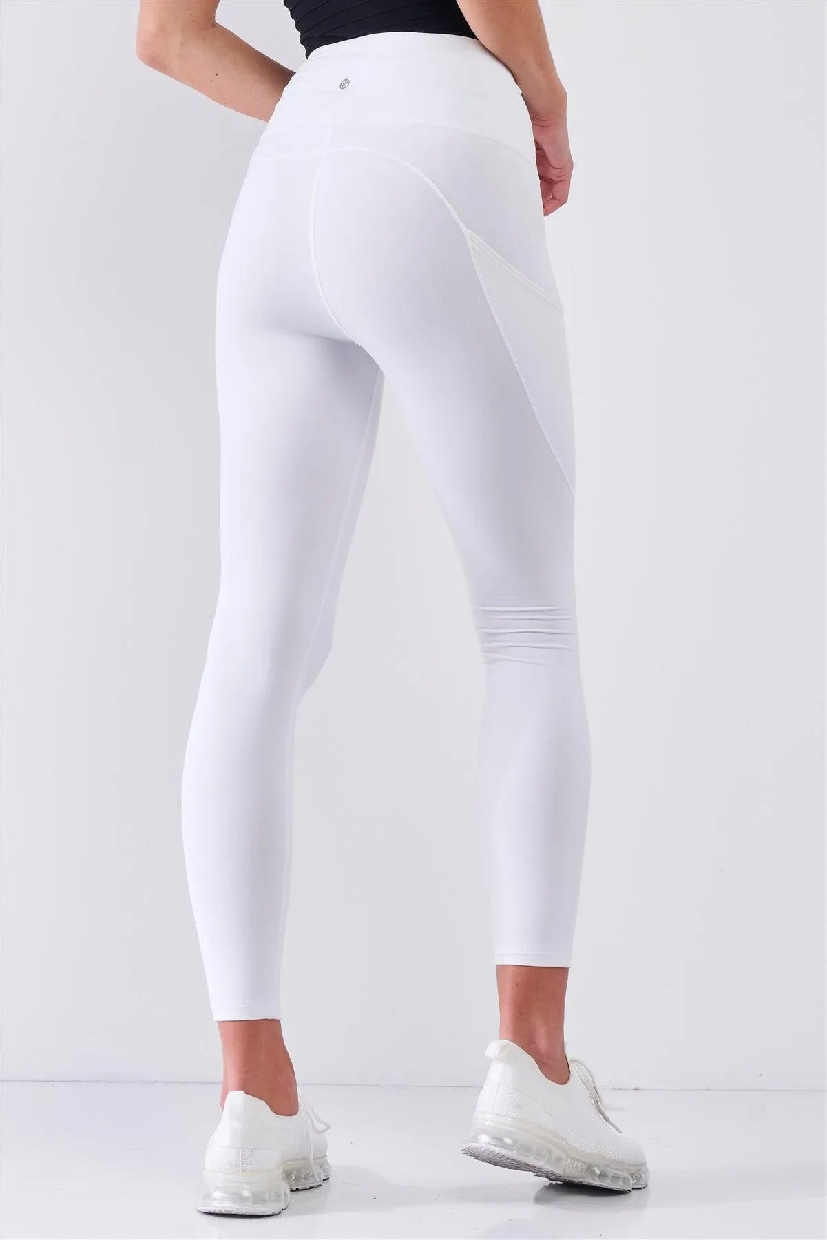 White High Waist Thigh Pocket Detail Tight Fit Soft Yoga & Work Out Legging Pants /1-2-2-1