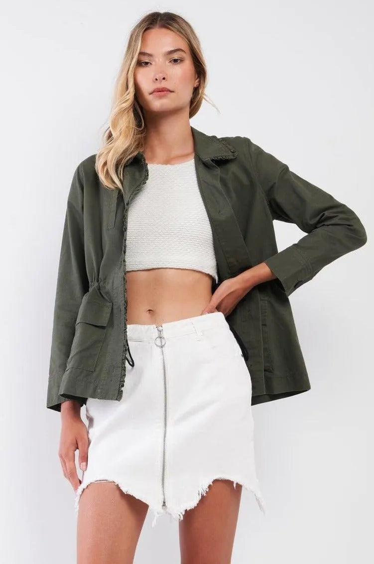 Utility Pockets Front Slit Drawstring Waist Midi SkirtVendor:Mustard Seed