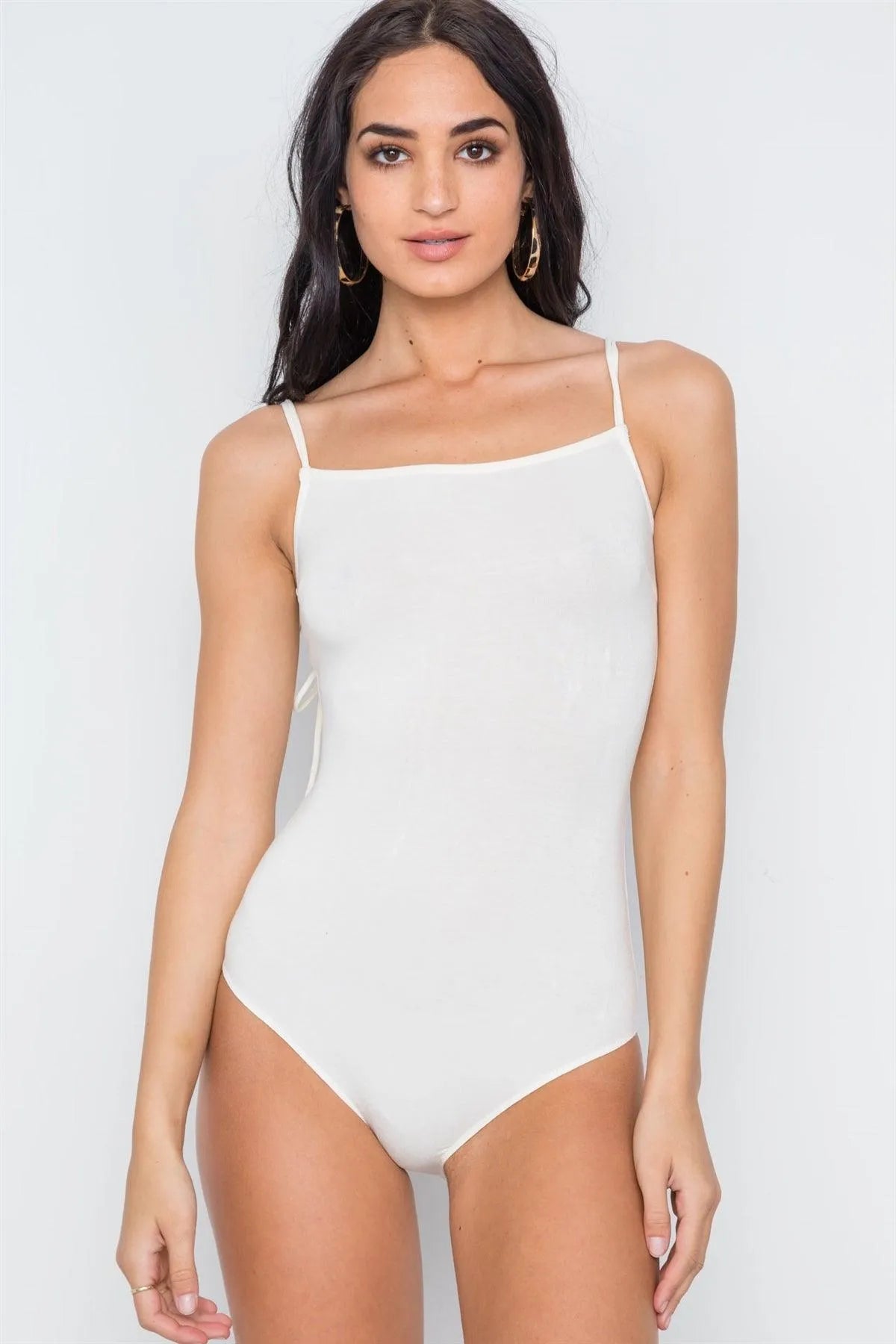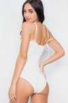White Knit Self Tie Cami Strings Solid Bodysuit /3-2-1
