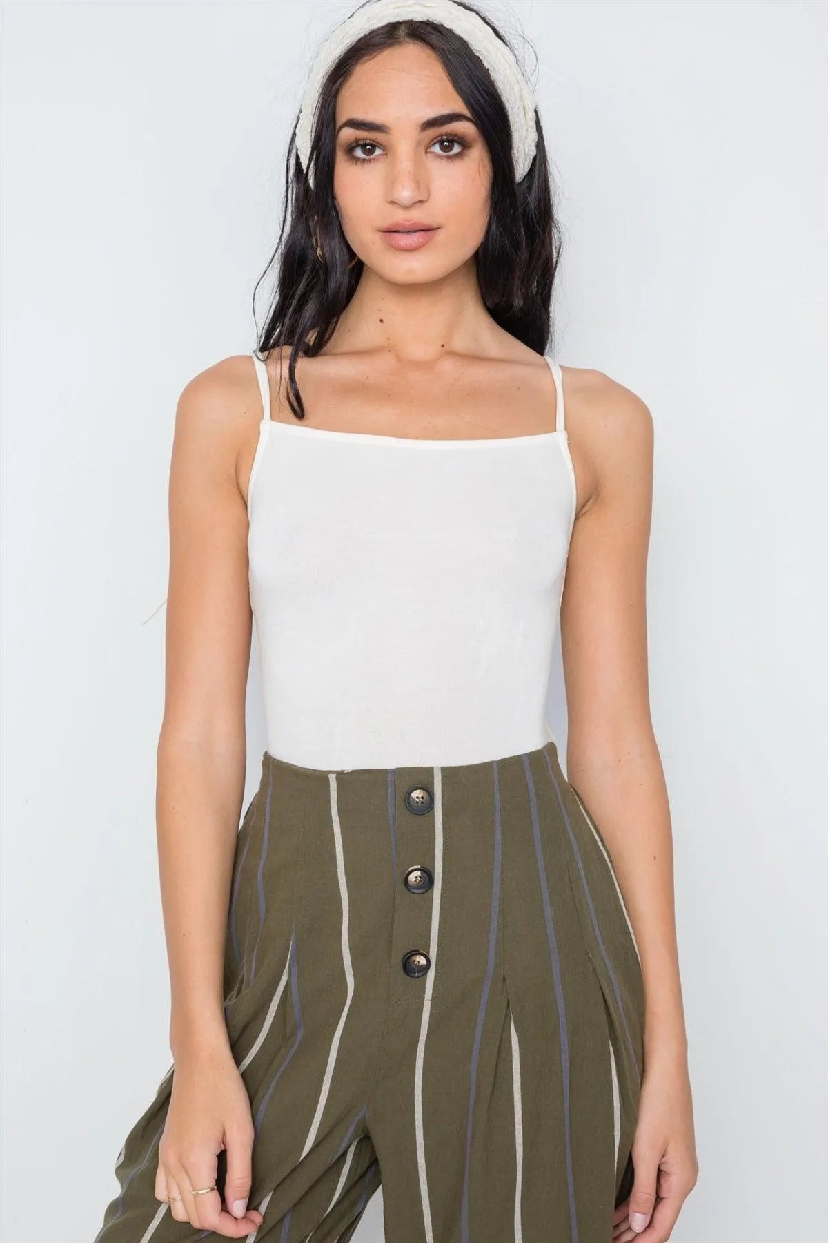 Square Neck Basic Essential Stretchy Bodysuit Tank TopVendor:Le Lis