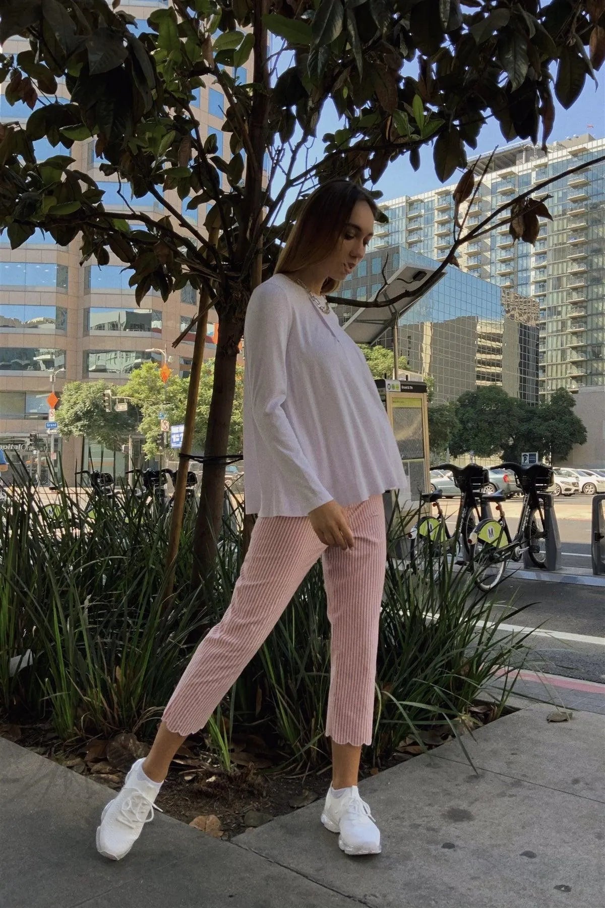 Ribbed Knit with Pockets Elastic Waist Tapered Leg Loungewear Jogger PantsVendor:White Birch