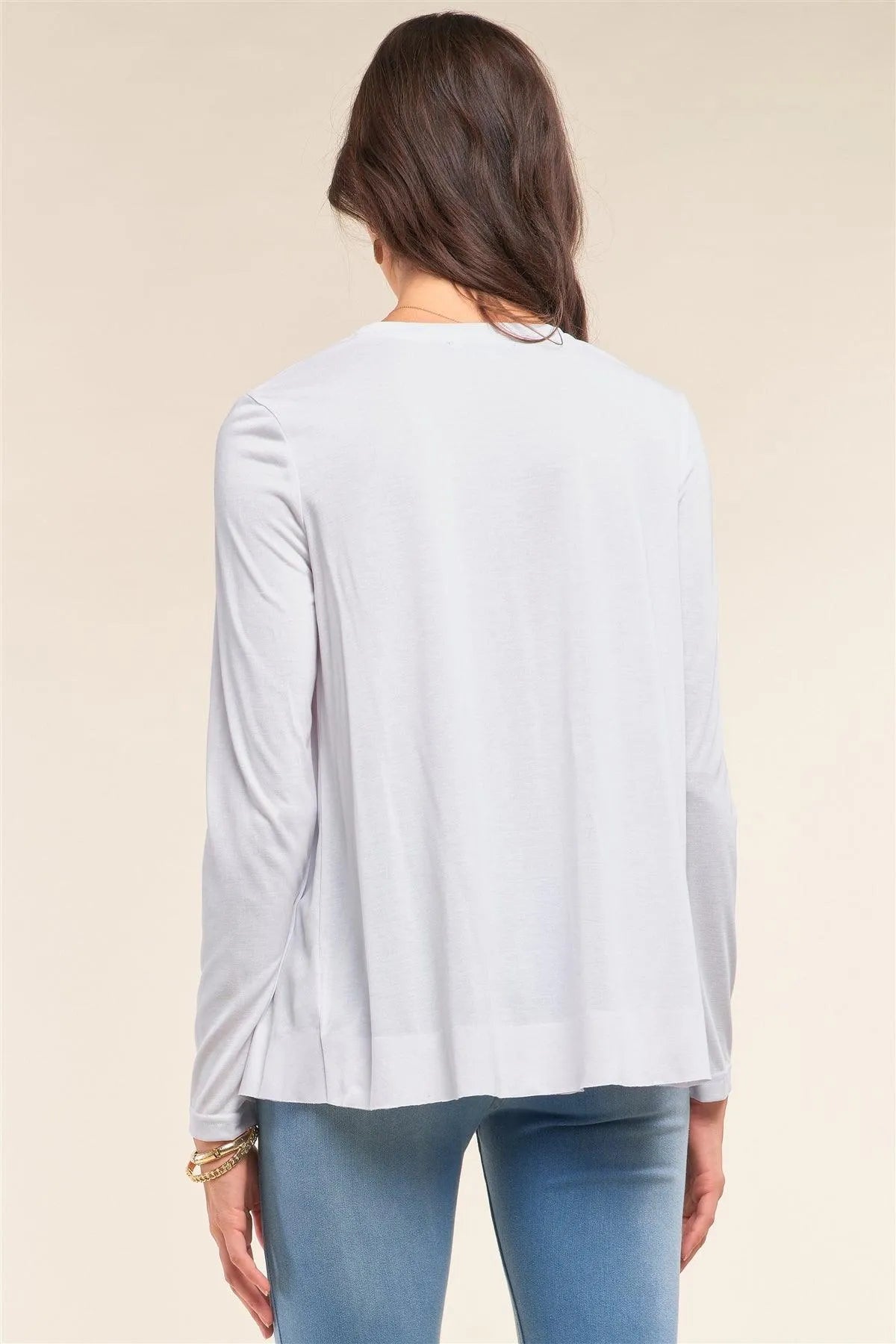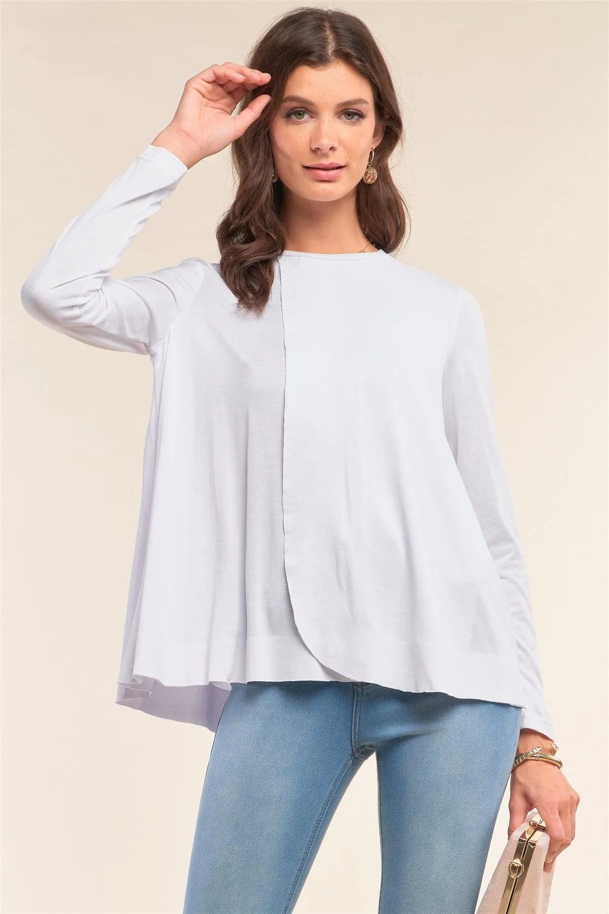 White Loose Fit Long Sleeve Crew Neck Wrap Front Raw Hem Detail Top /1-2-1