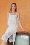 White & Nude Crochet Sleeveless Square Neck Side Split Midi Dress /1-2-2-1