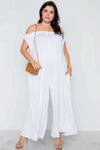 Plus Size White Off-The-Shoulder Loose Fit Jumpsuit / 1-3-3