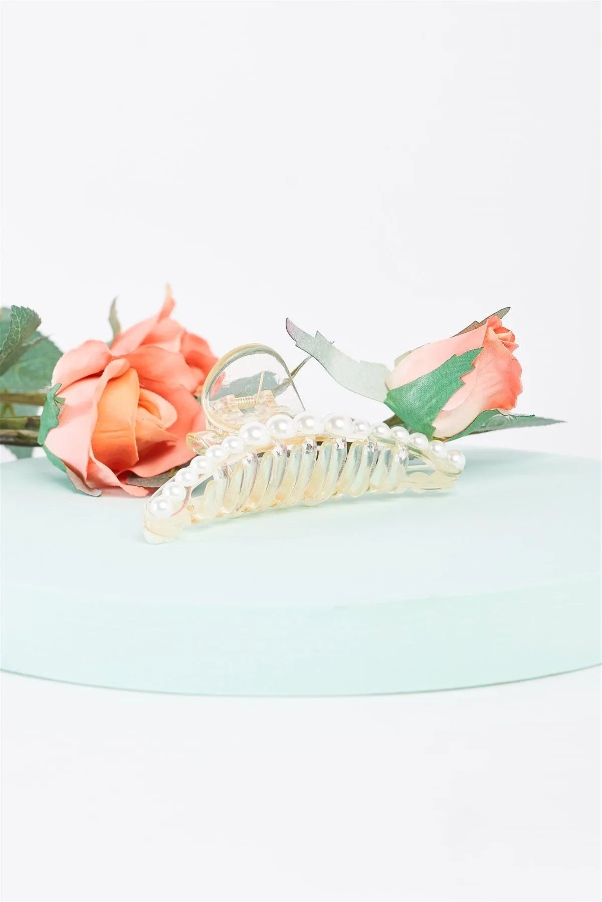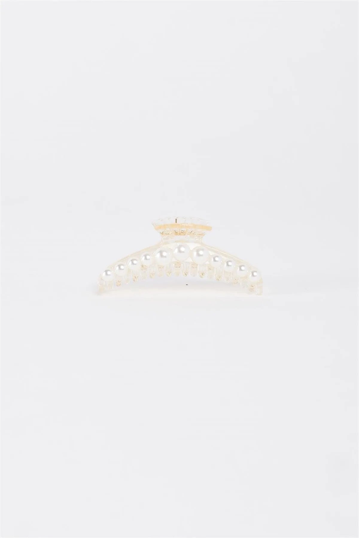White & Pearl Small Hair Claw Clip /3 Pieces