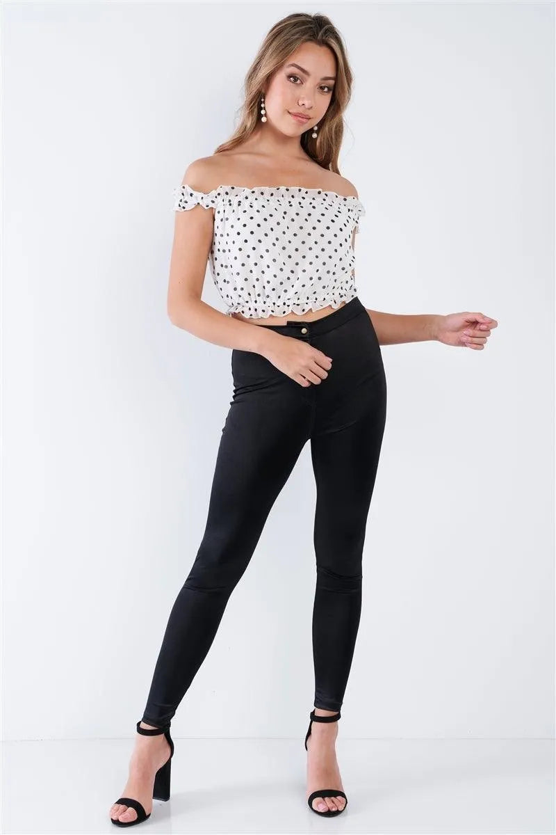 White Polka Dot Print Off The Shoulder Crop Top /2-2-2
