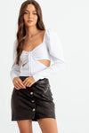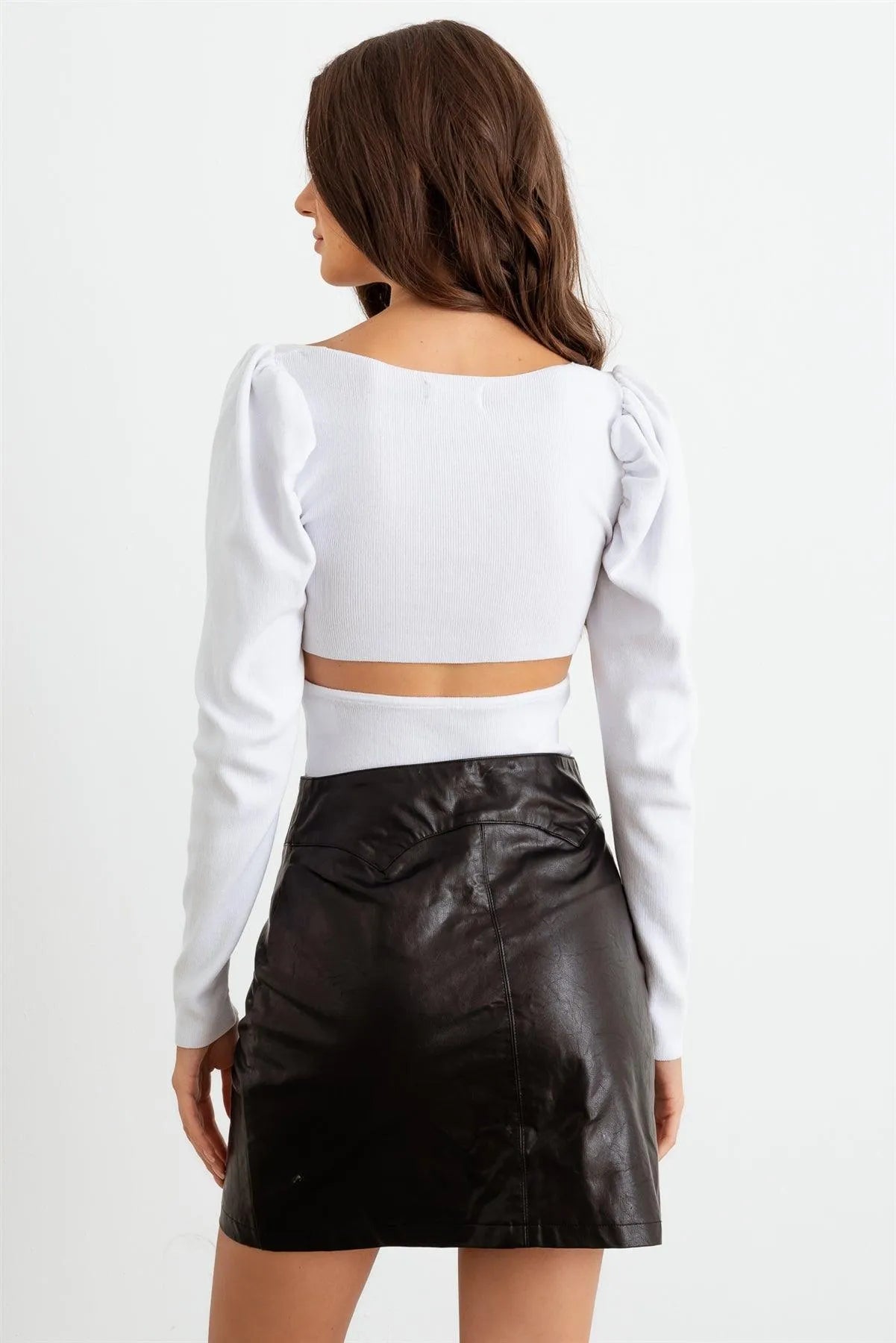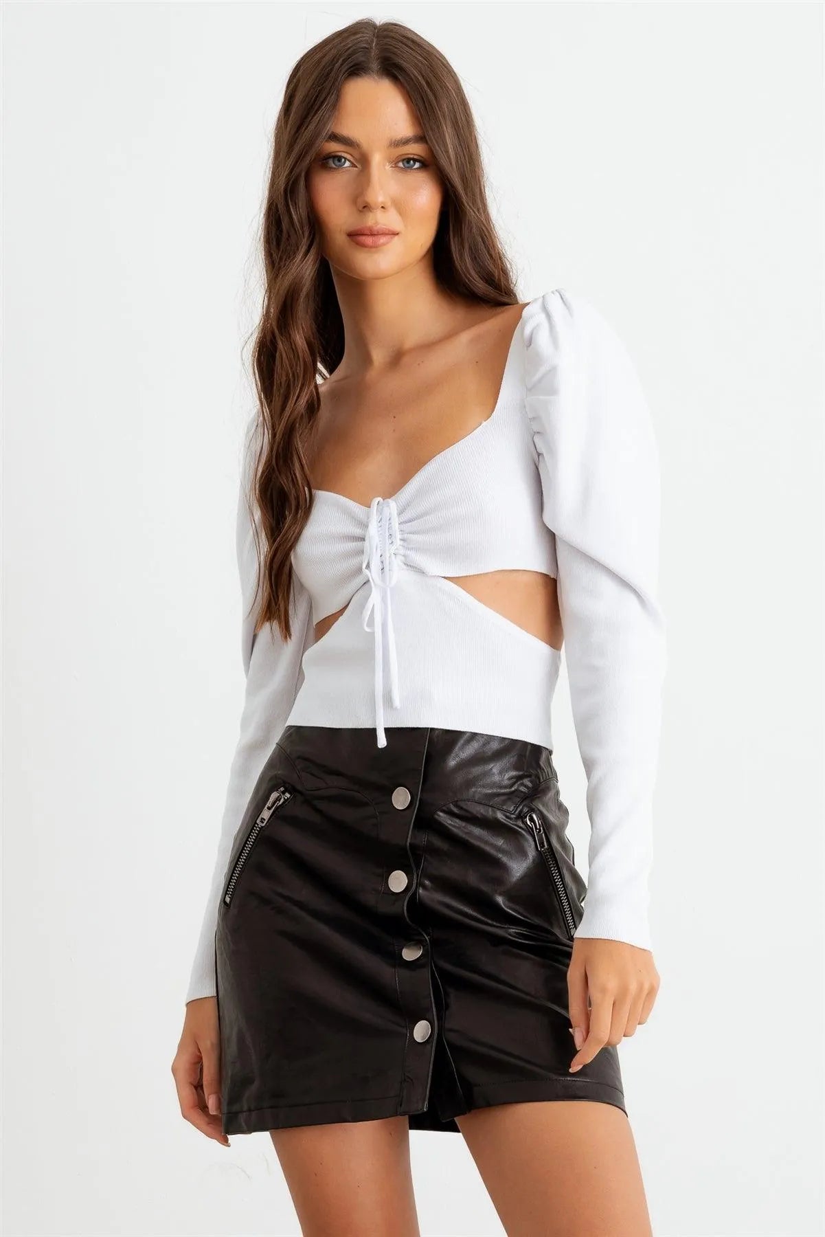 Ruched Puff Long Sleeve Cut-Out Crop Top