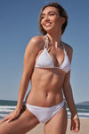 White Self-Tie Back And Neck Triangle Bikini Top & Side Self-Tie Gold Braid Straps Bikini Bottom Two-Piece Swimsuit /3-2