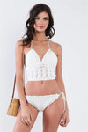 White Self-Tie Halter Neck Crochet Two Piece Swimsuit