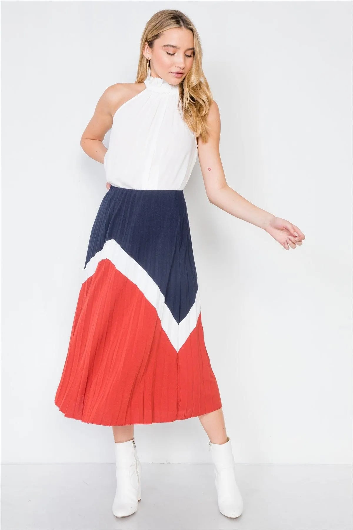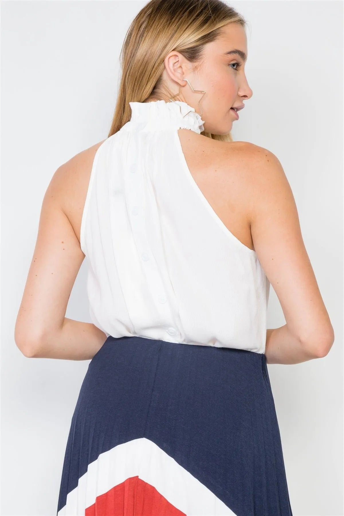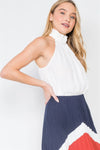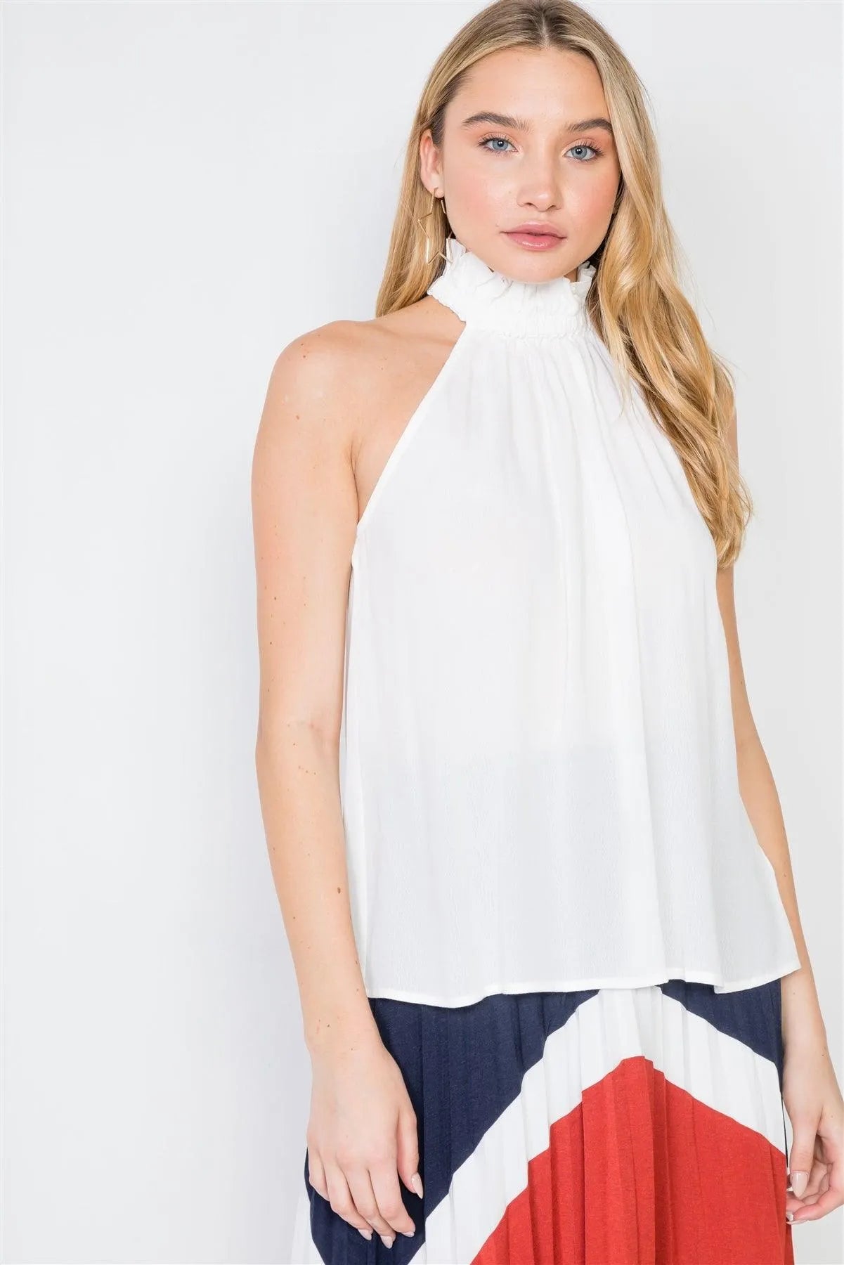 White Sleeveless Ruffle Mock-Neck Top /2-2-1