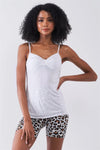 This white sleeveless v-neck cami top offers a versatile and timeless addition to your wardrobe. The stitching detail and v-neck design create a simple yet stylish look, perfect for layering or wearing on its own. Made with high-quality materials for comfort and long-lasting wear.