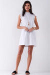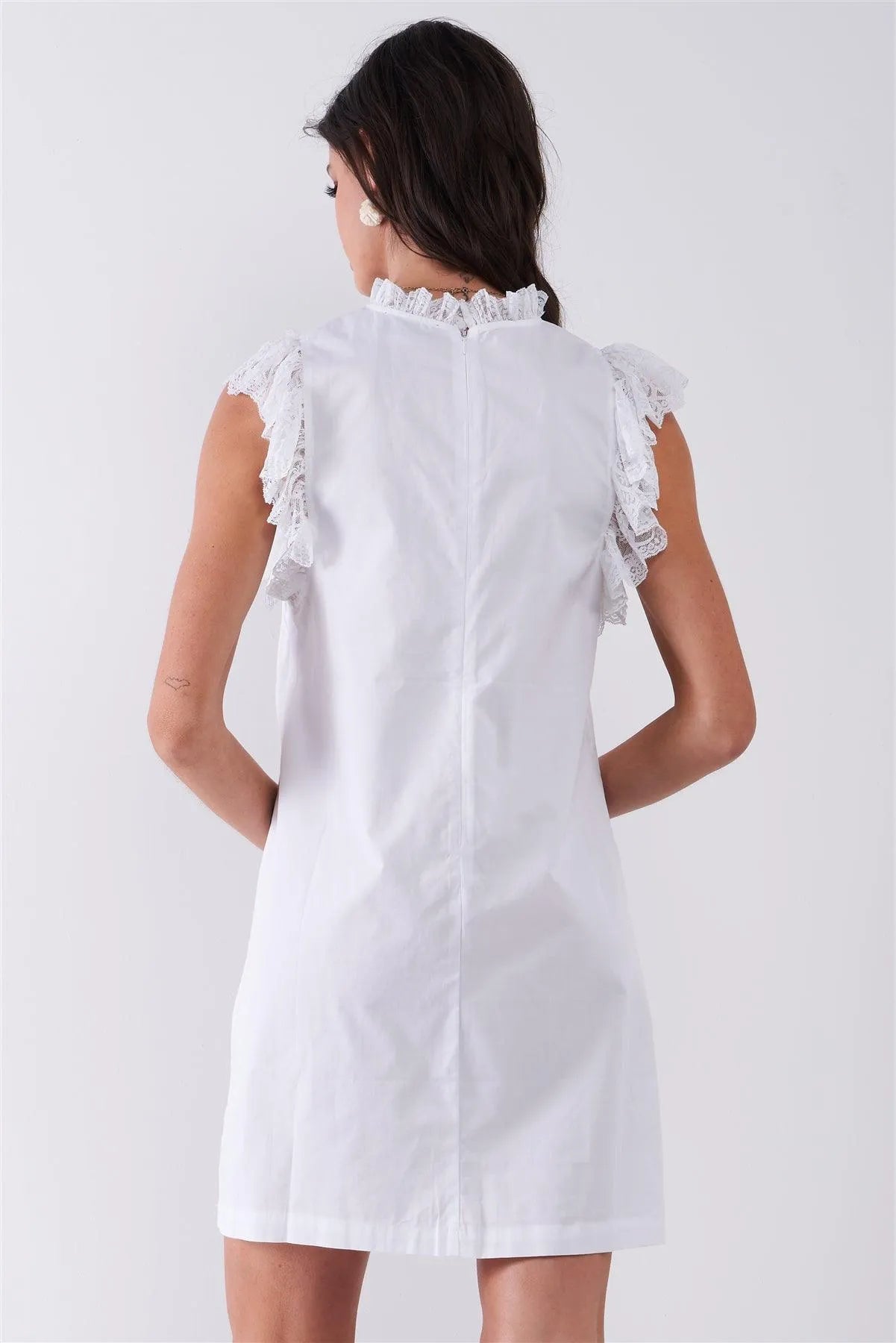 White Solid Sleeveless Lace Frill Trim Relaxed Mini Dress /1-1-2-1