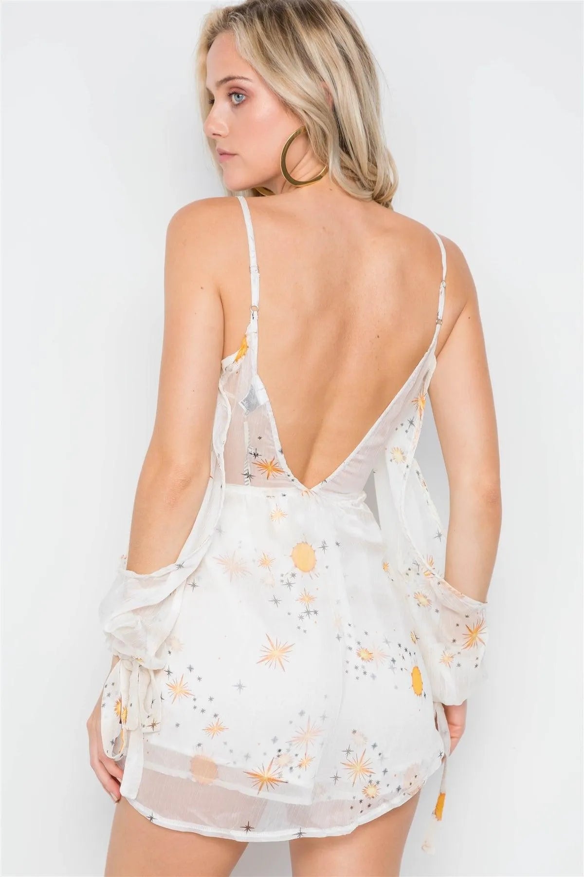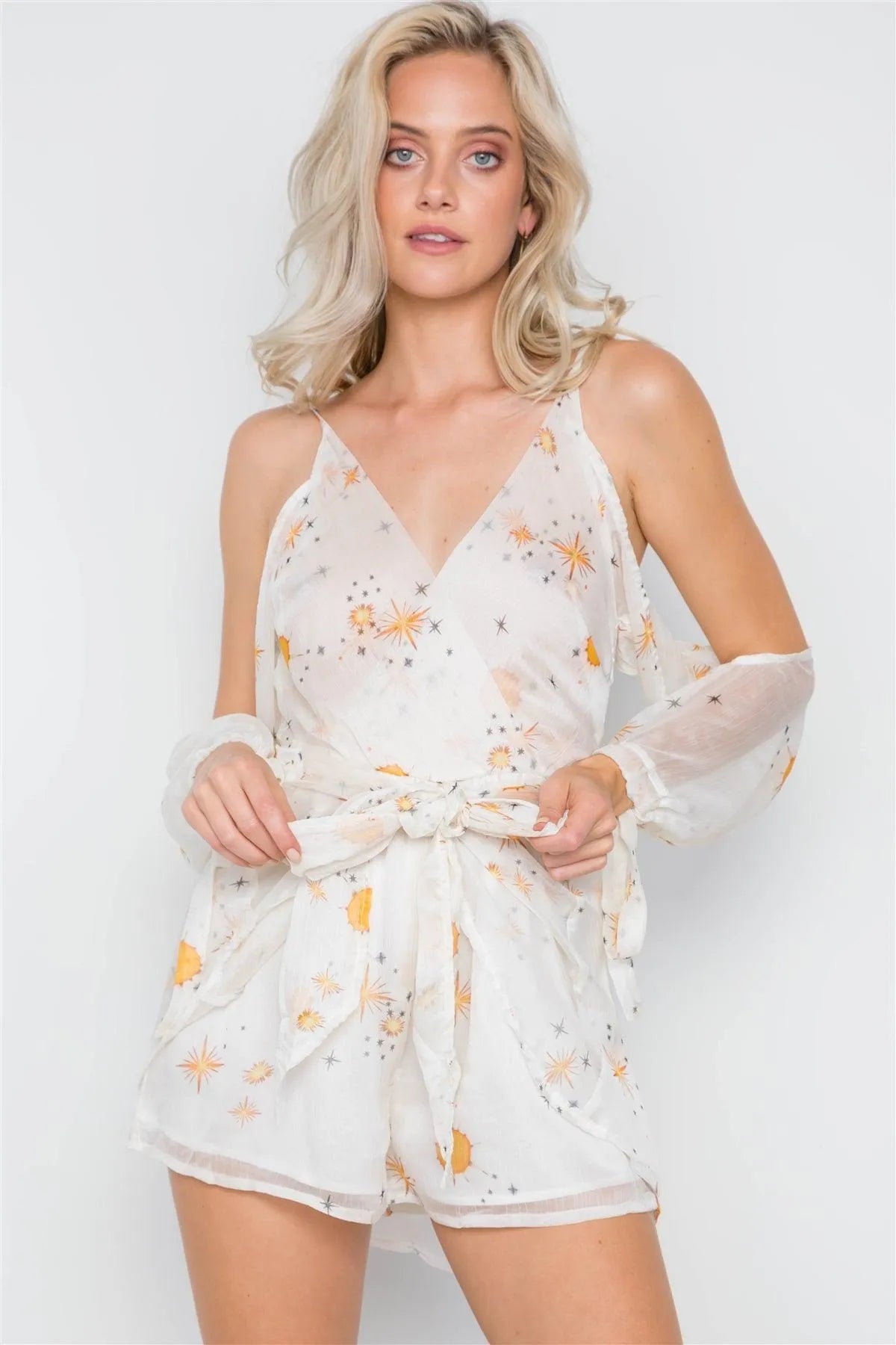 White Star Dust Print Chiffon Cold Shoulder Romper /1-3-2-1