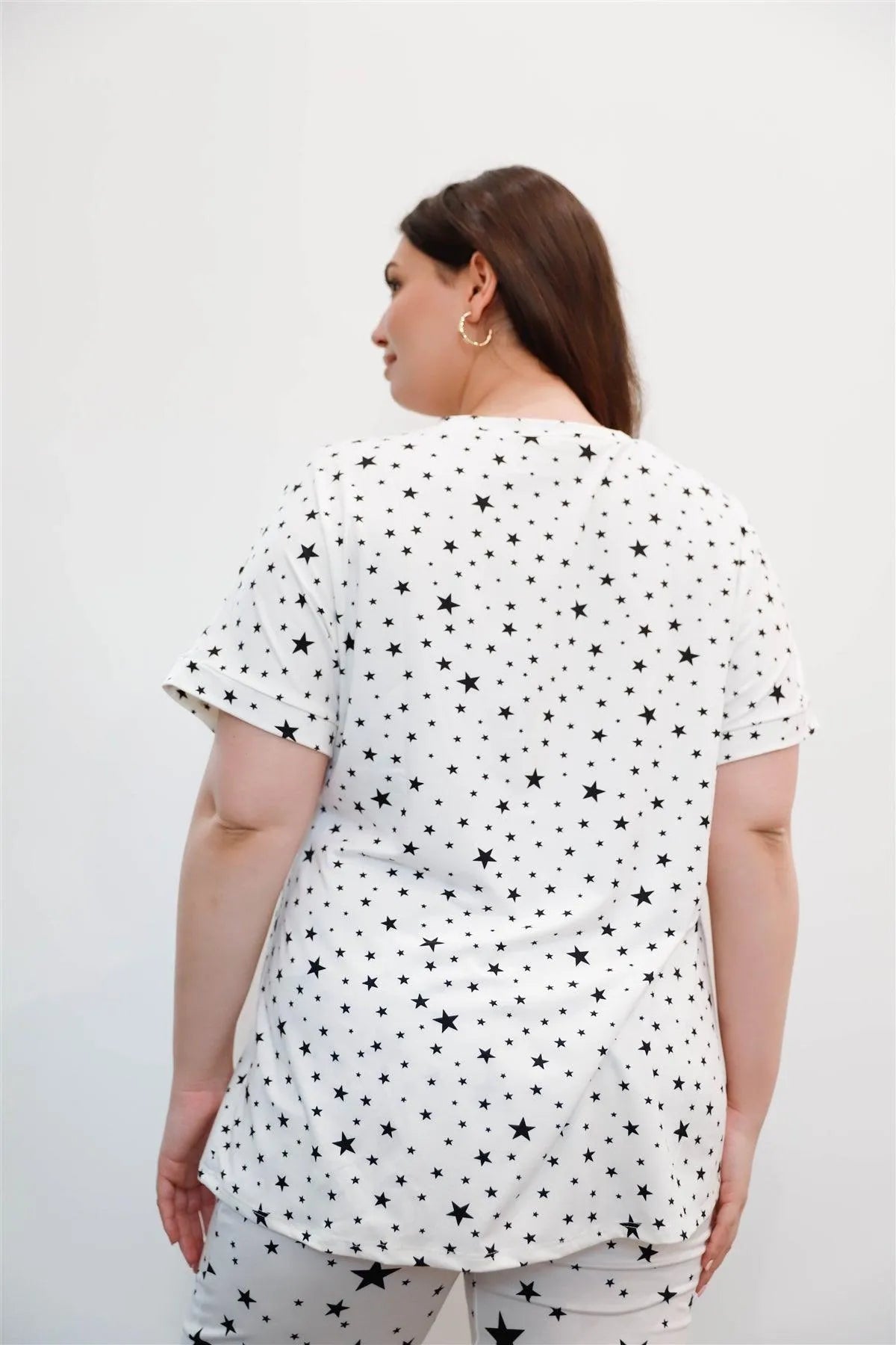 White Star Print Loose T-Shirt & Sweatpants Set /1-1-1