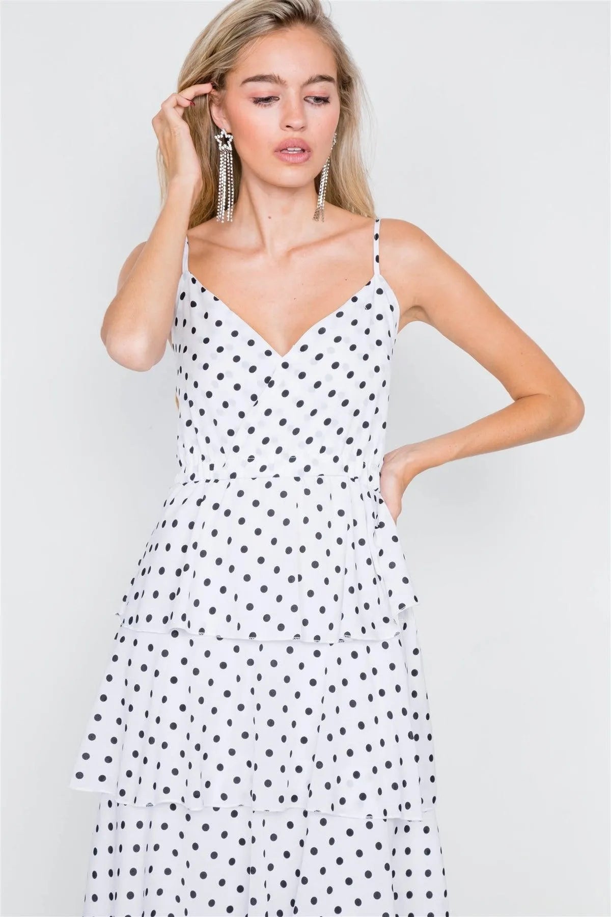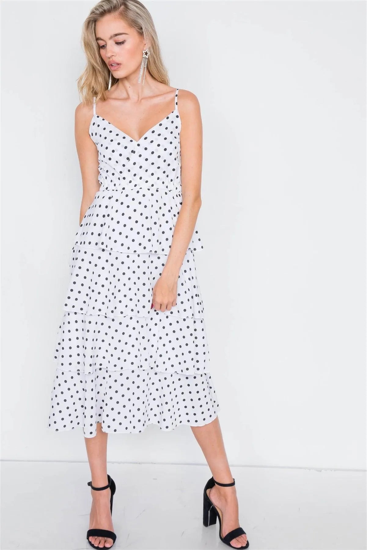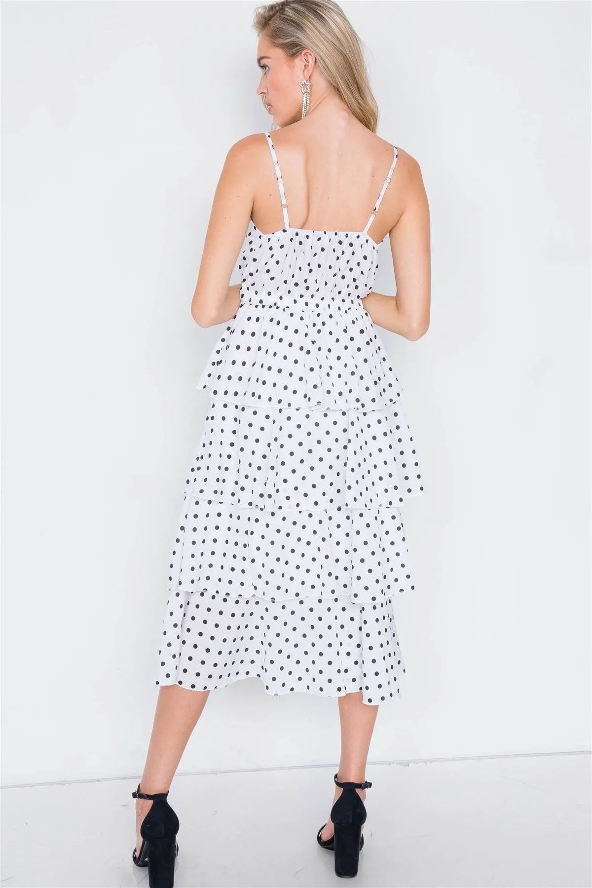 White Tiered Ruffle Polkadot Midi Dress /2-2-2