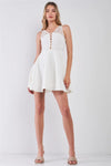 White V-Neck Sleeveless Front Horizontal Straps Lace Trim Back Cut-Out Mini Dress /1-3-2