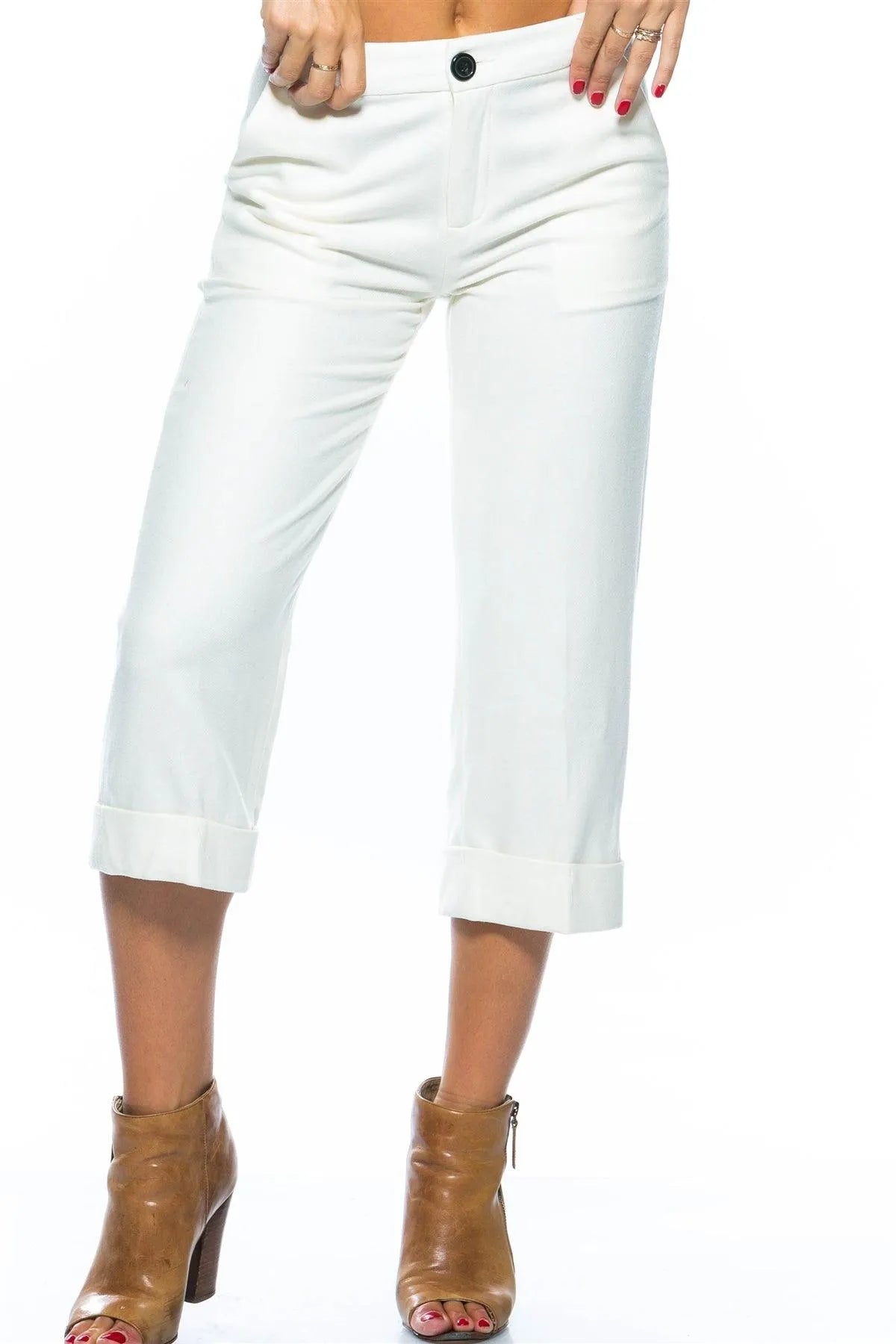 White Wide Leg Mid-Rise Capri Pants / 3-2-1