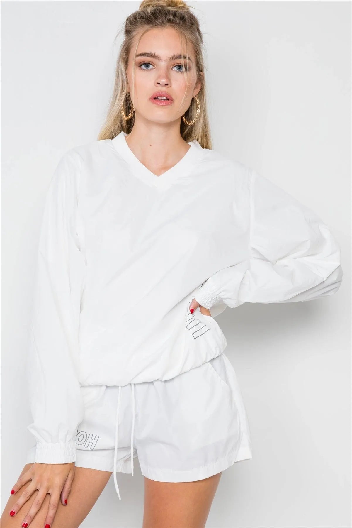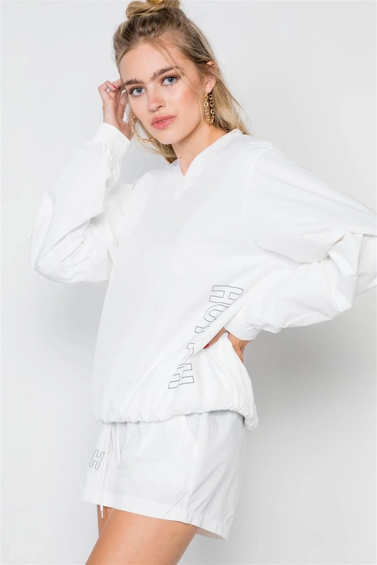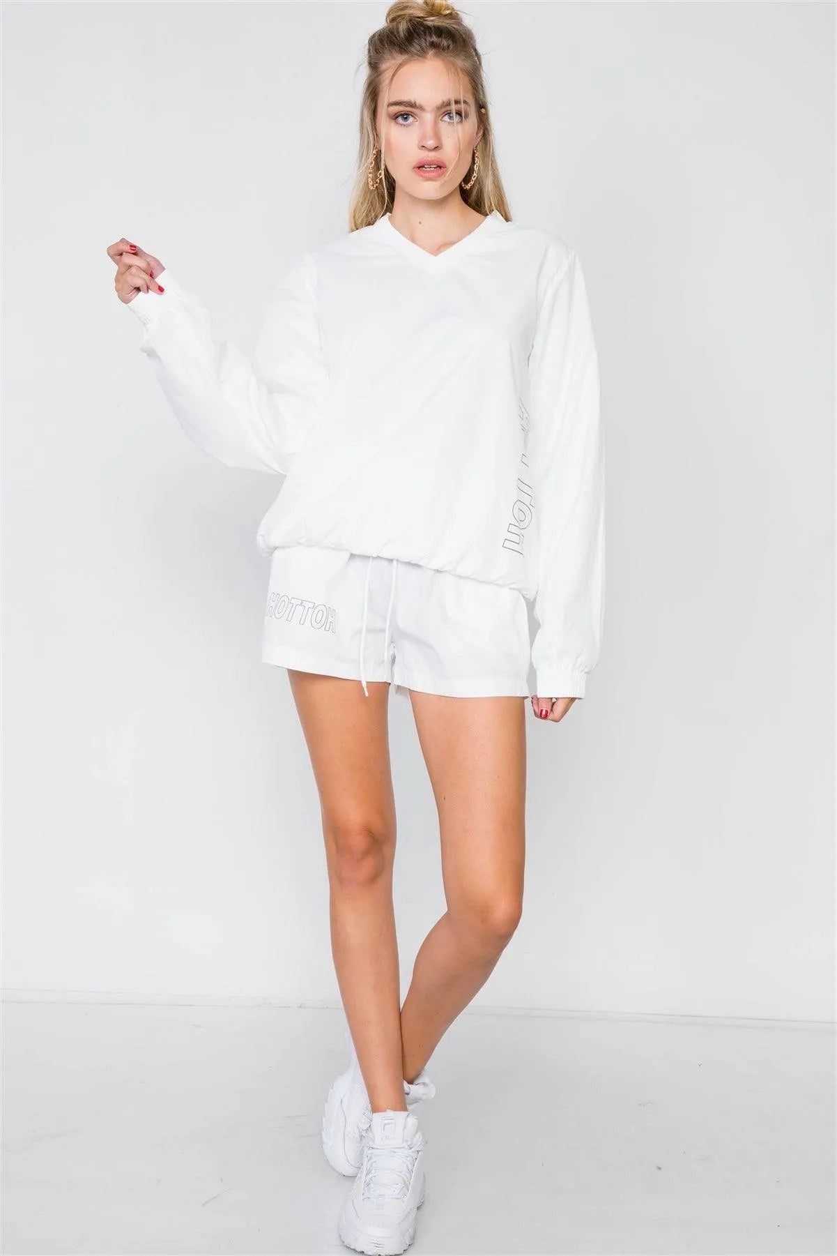 White Windbreaker Graphic Jacket Short Set / 2-2-2