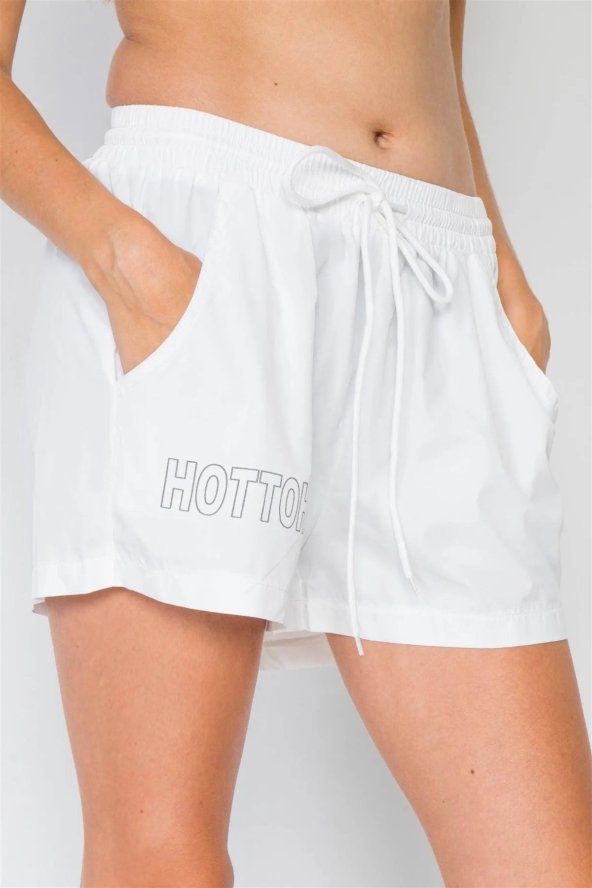 Two Piece set features:Jacket features: long sleeves, ribbed V-neck, graphic print "HOTTOH" at side, elasticized hem, linedShort features: elasticized drawstring waist, graphic print "HOTTOH" at front, side pockets, linedModel is 5'8 wearing a size Small ( Waist: 26", Bust: 32B, Hips: 34")Item measurements Jacket: Length: 26", Bust: 46", Sleeves: 24.5"Item measurements Legging: Length: 14.5", Waist: 26"True to SizeAvailable in Black