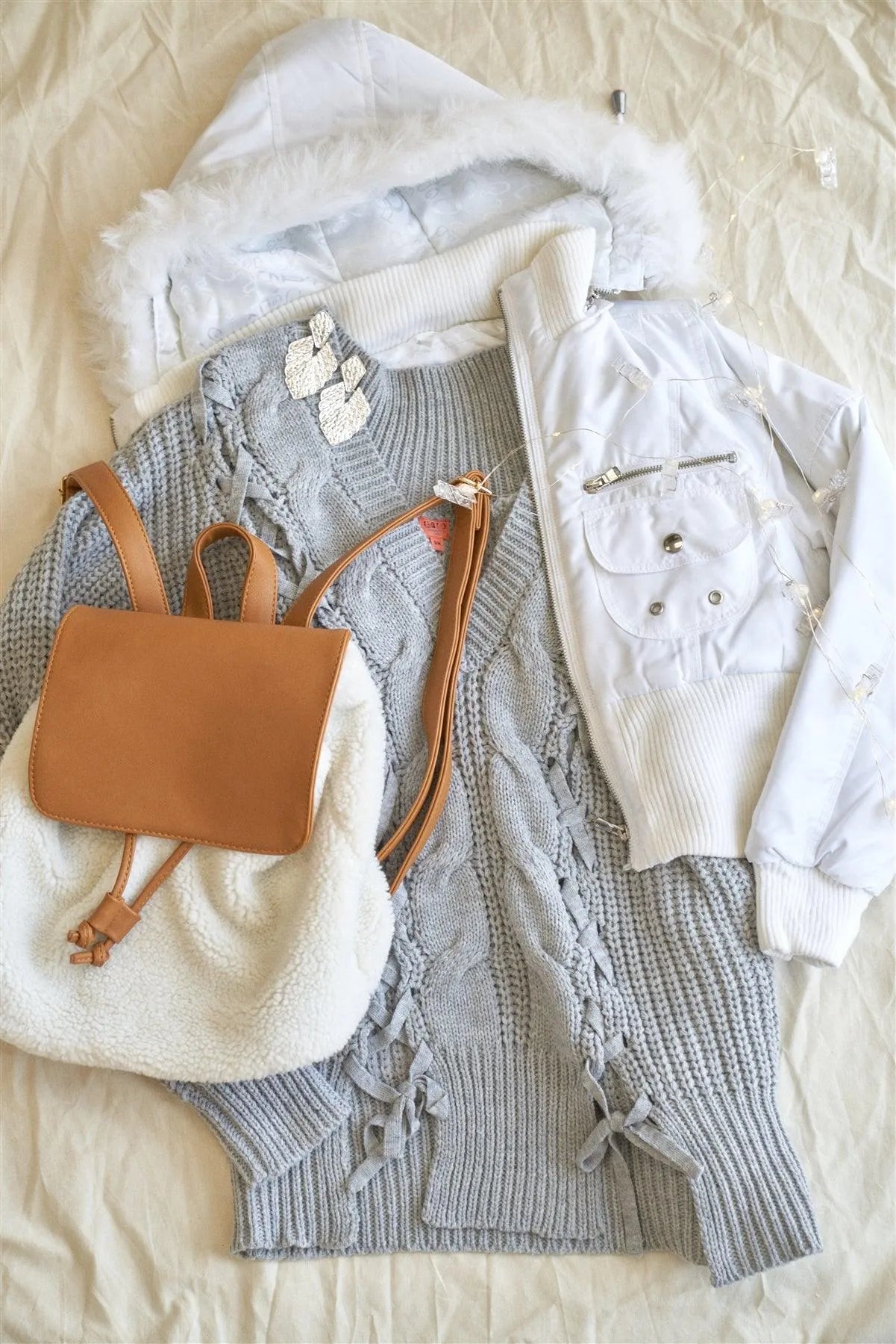 🖤 Item features: White, solid, long puffed sleeves with stretchy ribbed cuffs, front zipper closure, glittered corset-like narrowed ribbed stretchy waist, draw string tie hood with zipper detachable faux fur detail, two front chest zipper pockets, cropped length, tight fit, lined, semi-stretch, casual, retro vibe, flirty, sport, comfy, winter ski jacket, styli