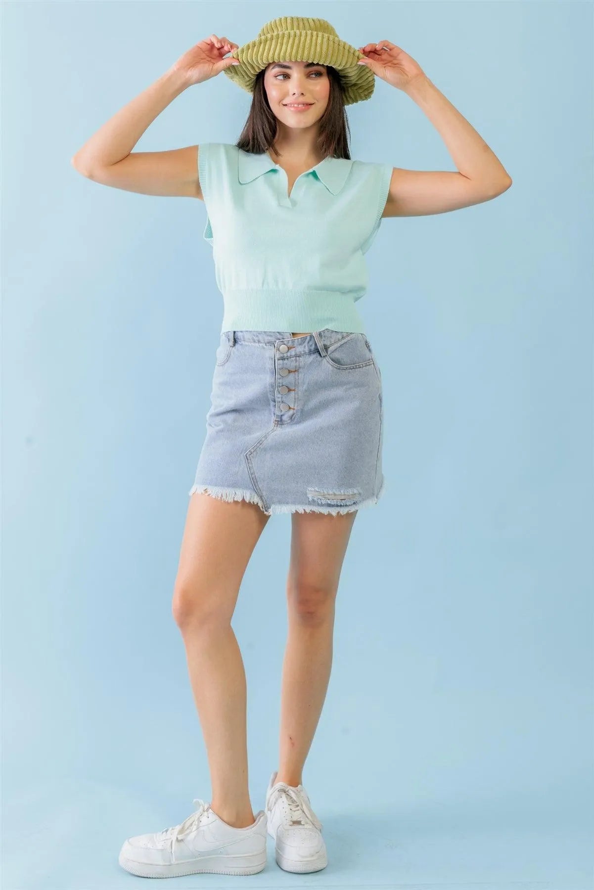 Aqua Sleeveless Collared Neck Crop Top /3-2-1