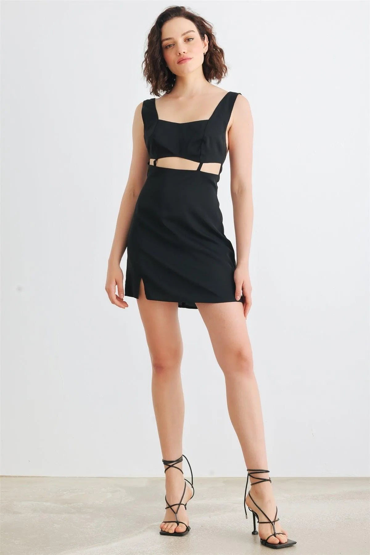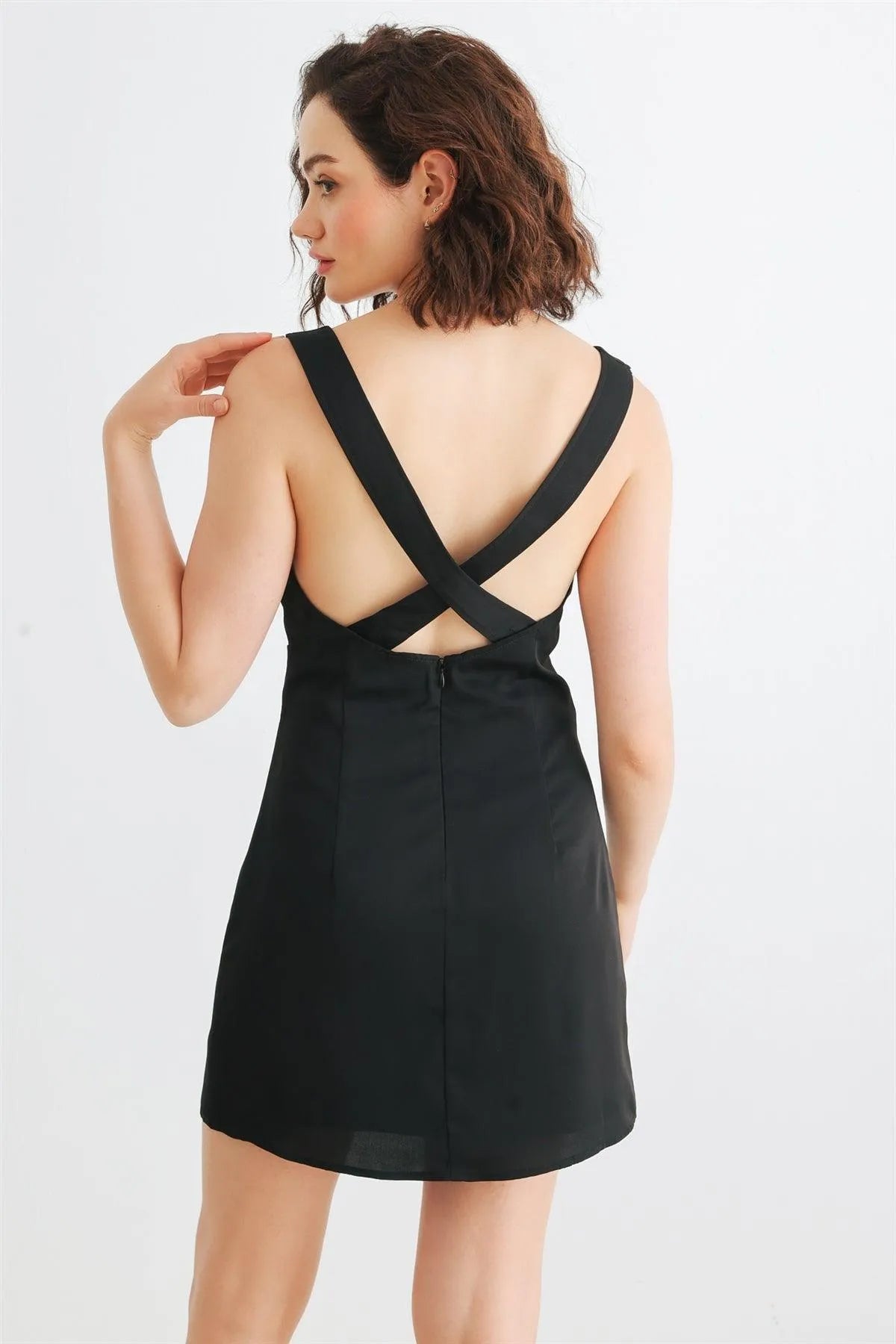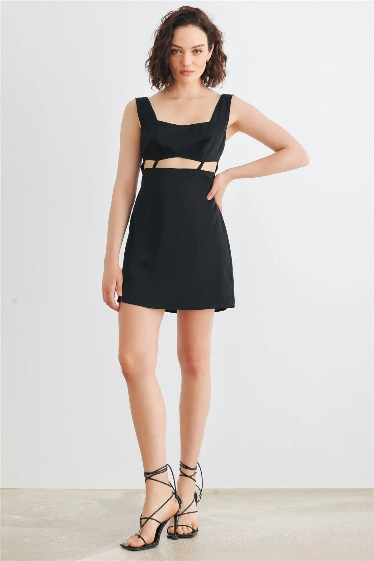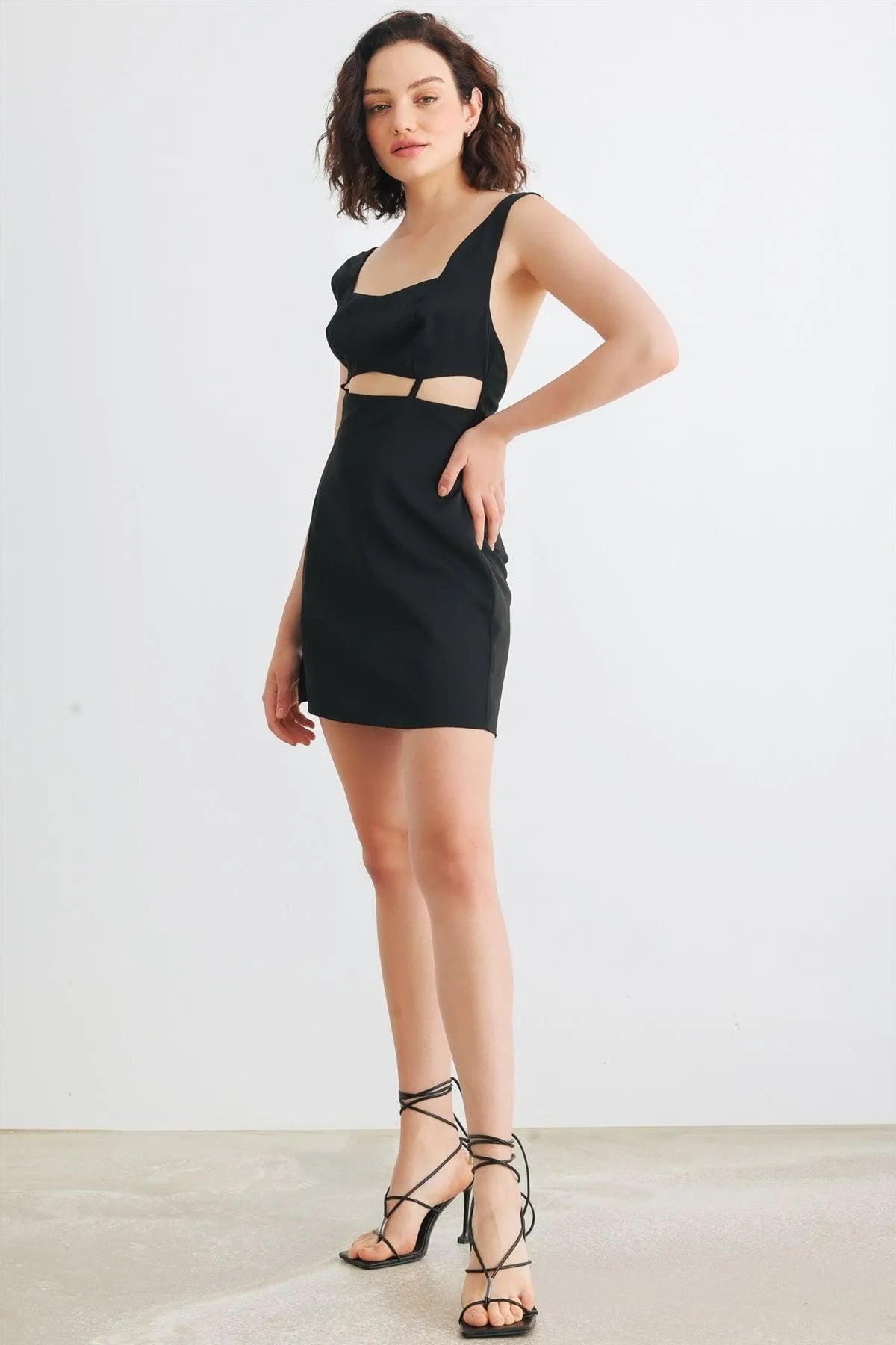 Black Sleeveless Cut-Out Detail Square Neck Back Criss-Cross Mini Dress /1-2-2-1