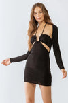 Black Cut-Out Open Front Long Sleeves Mini Dress