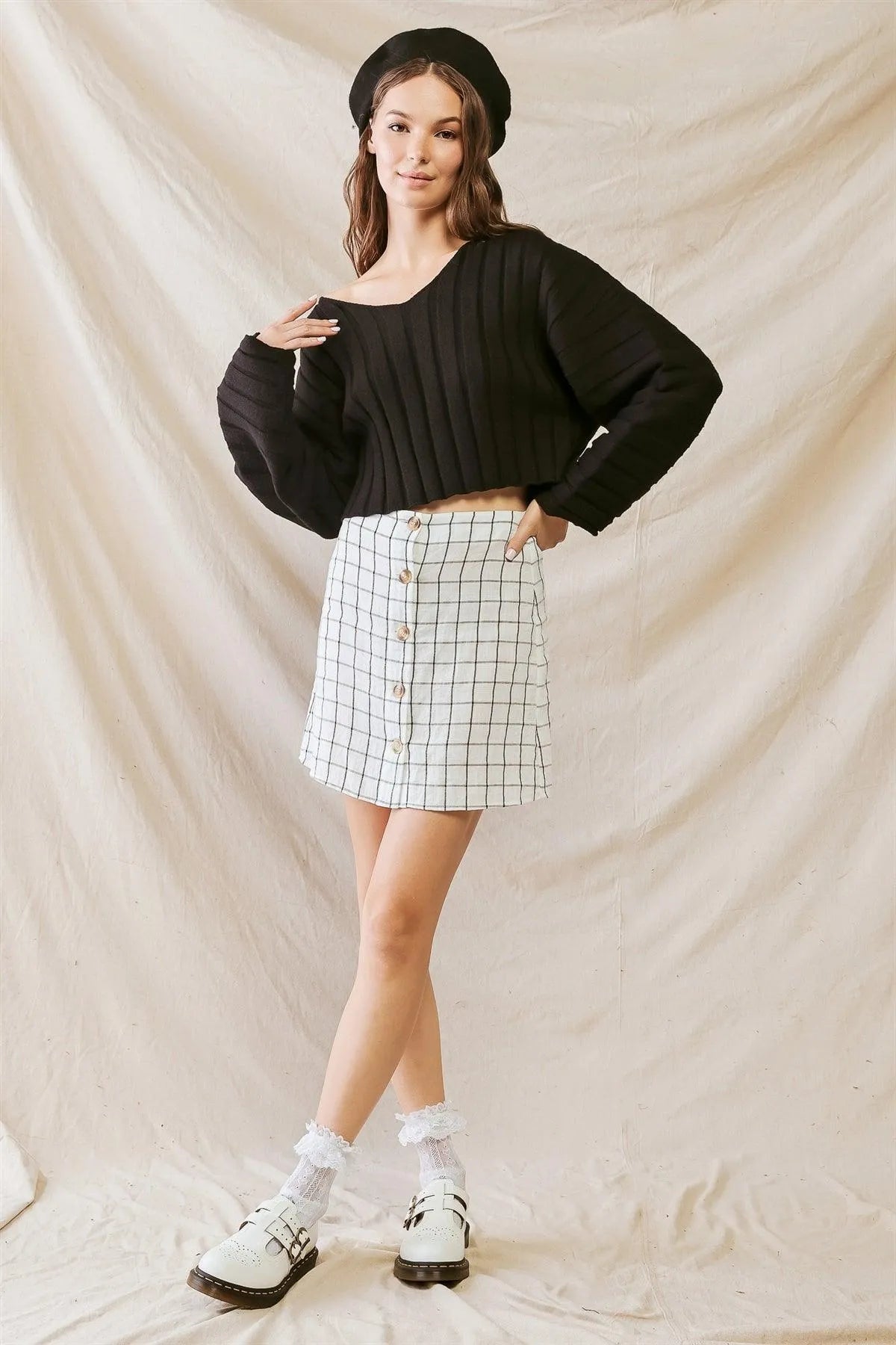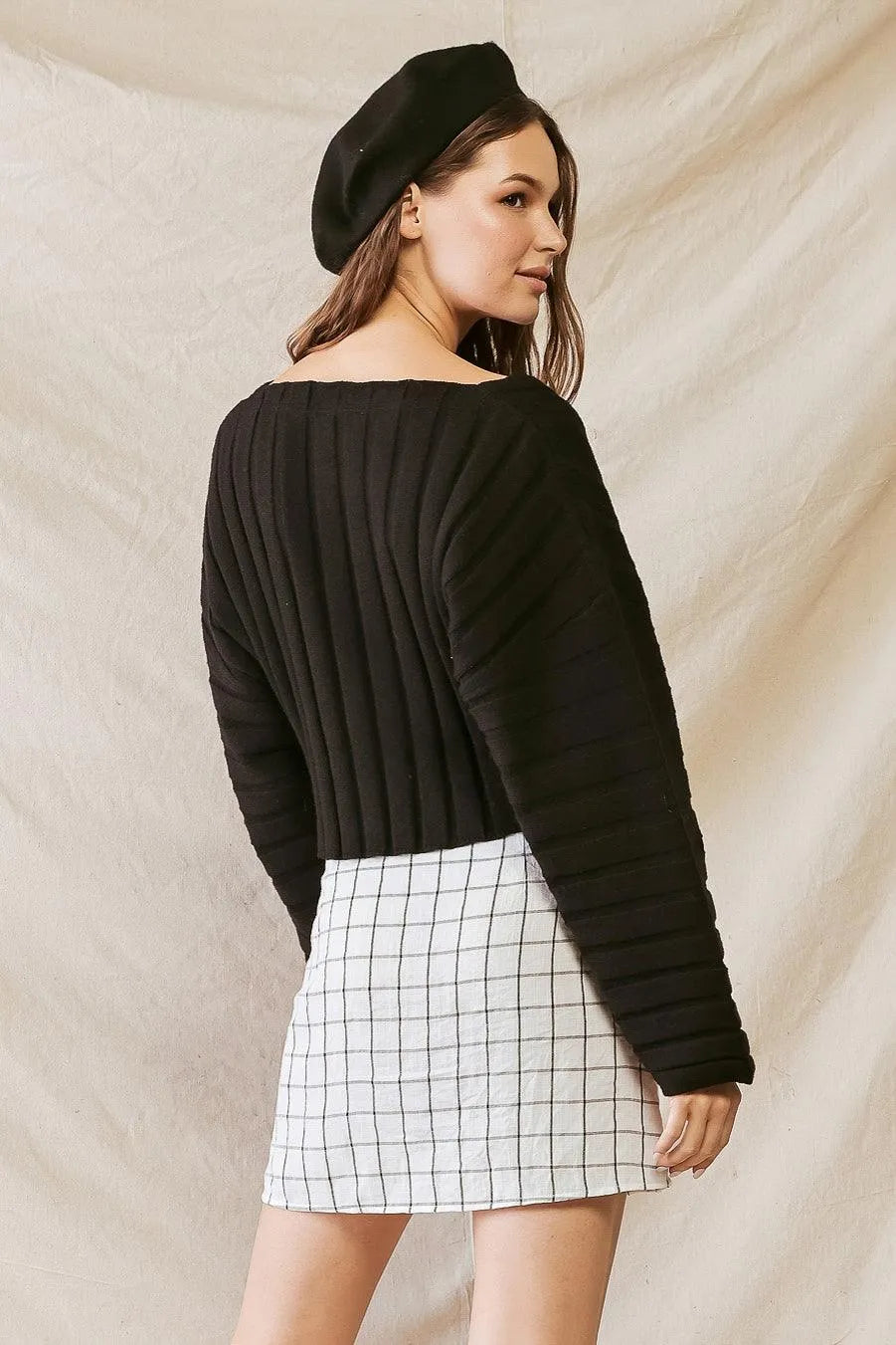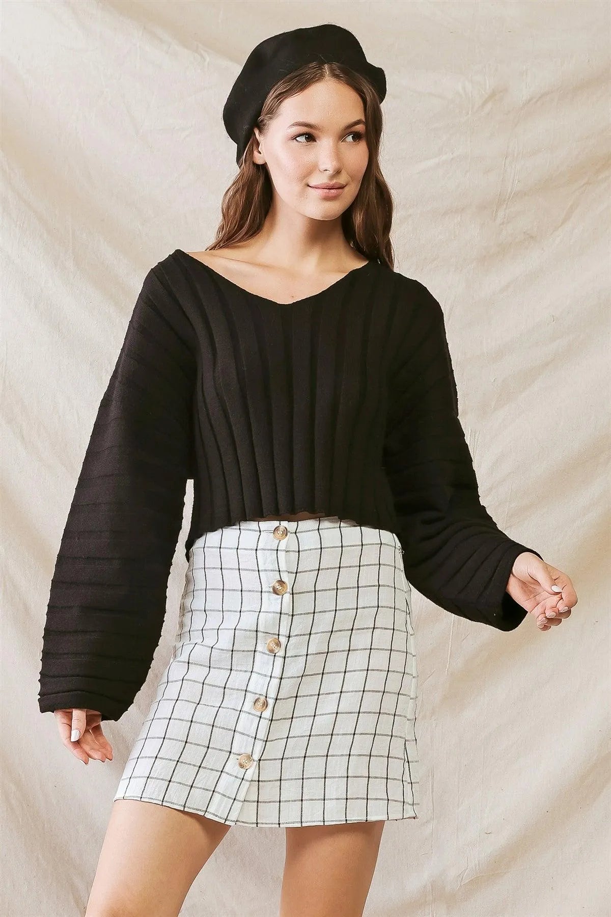 Cropped V-Neck Long Sleeve Soft Knit Cozy Boutique Fashion SweaterVendor:DOUBLE ZERO