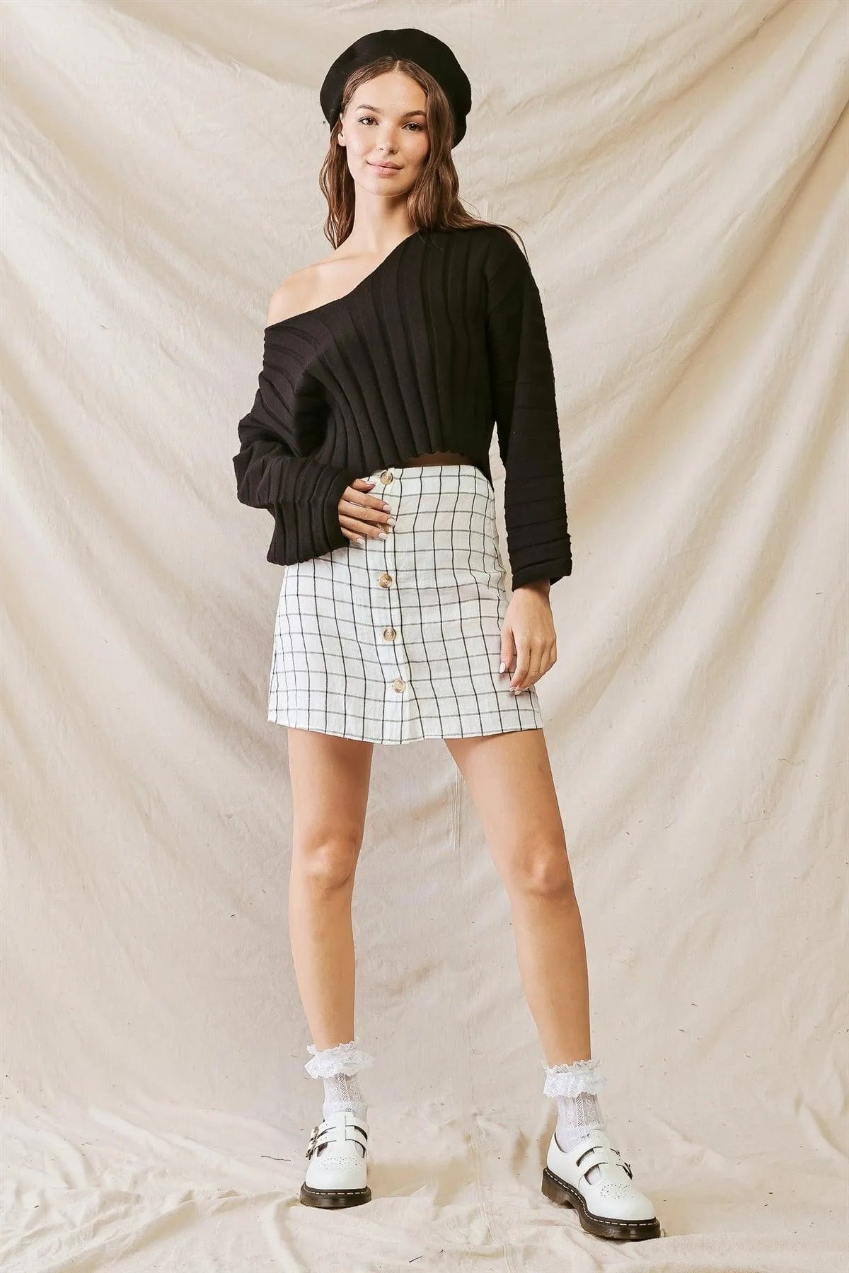Black Knit Ribbed Viscose Blend Long Sleeve Crop Sweater /1-2-2-1