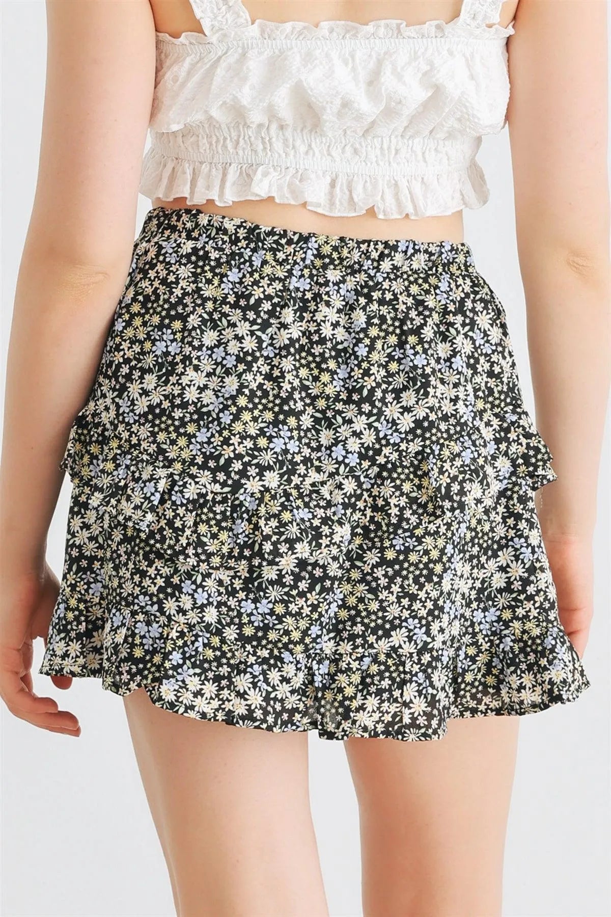Black Multi Floral High Waist Tiered Mini Skirt /3-2-1
