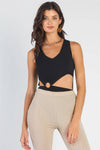 Black Ribbed O-Ring Cut-Out Detail Sleeveless Bodysuit /2-3-1