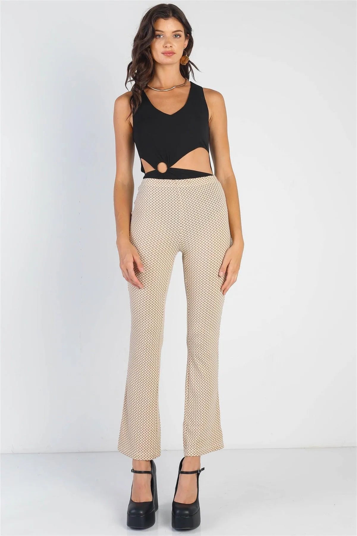 🖤 Item Features: Black, solid color, ribbed material, o-ring detail with cut-outs, sleeveless, v-neckline, thong double snap closure, slim fit, stretchy, non-sheer, unlined, casual, stylish, trendy