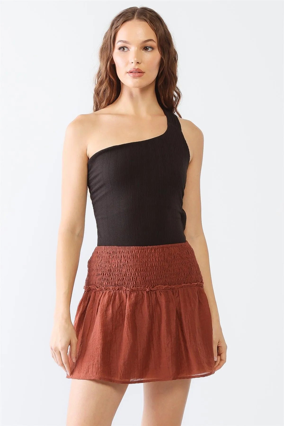 Black Ribbed One Shoulder Sleeveless Slim Fit Bodysuit /3-2-1