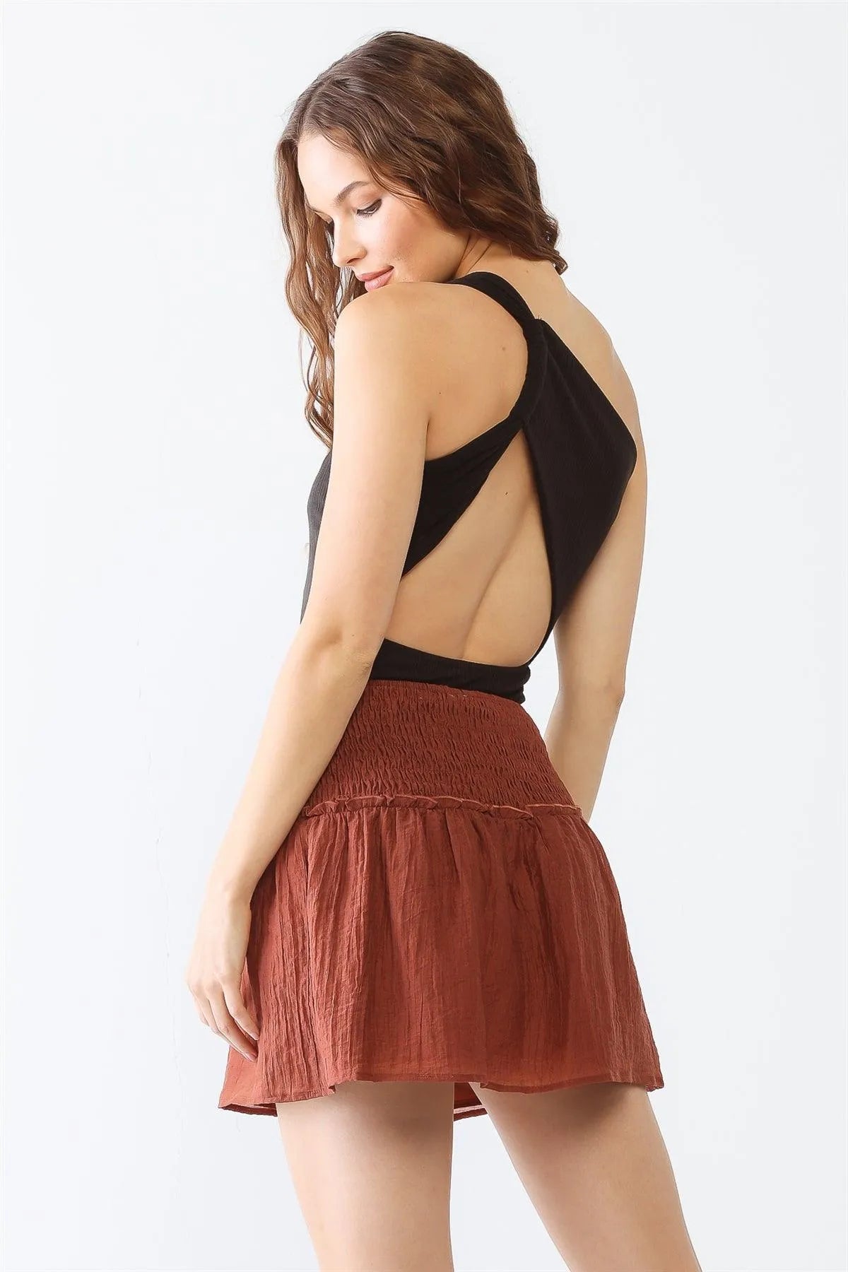 🖤 Item Features: Black, ribbed, solid color, one shoulder, sleeveless, asymmetrical back, thong double snap closure, slim fit, semi-stretchy, unlined, not see through, casual, cute, lifestyle, stylish, trendy