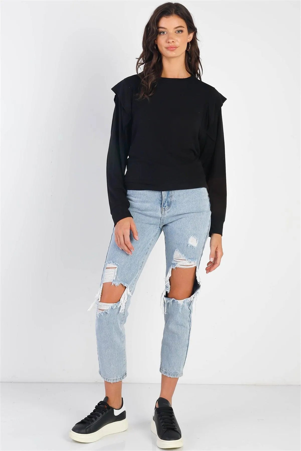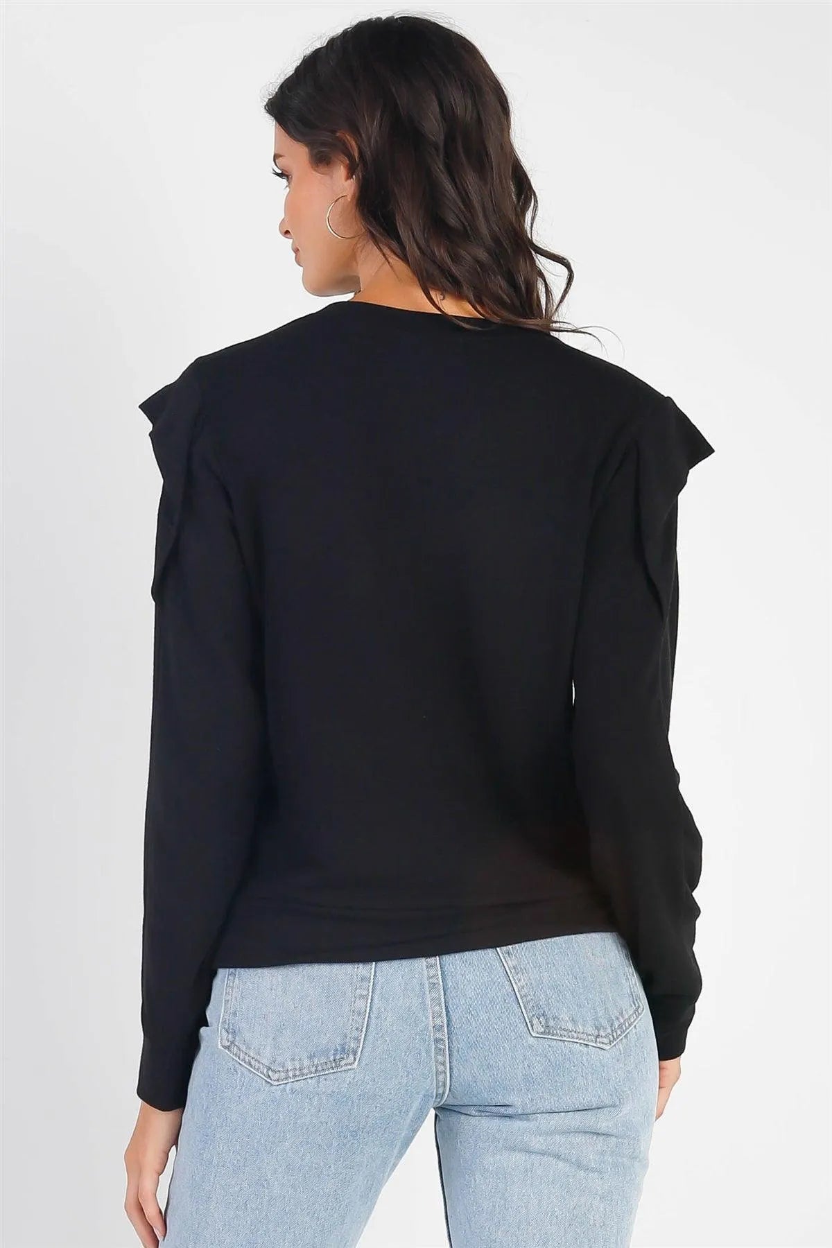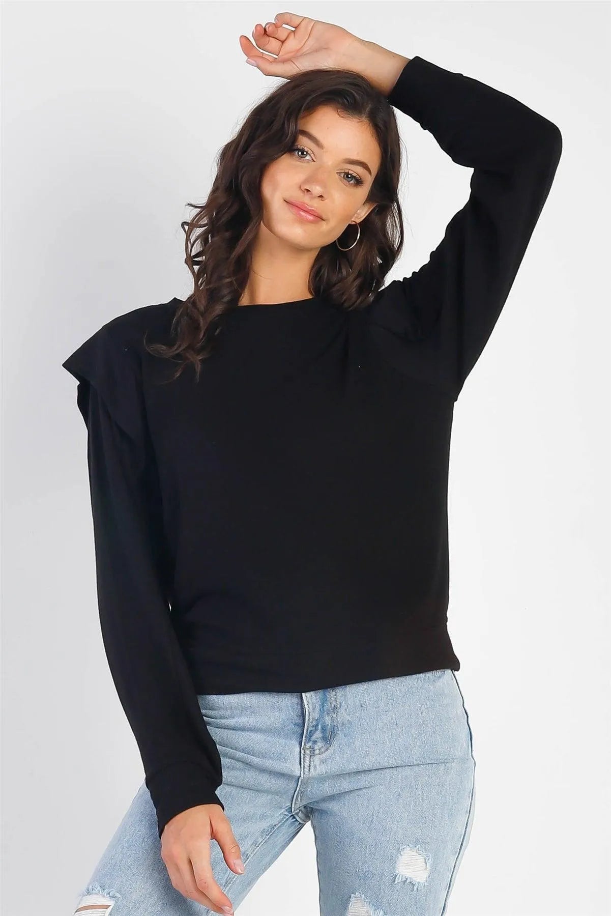 🖤 Get ready to elevate your wardrobe with our Round Neck Long Ruffle Sleeve Top! This playful piece features a round neck and long ruffle sleeves, adding a touch of flirty charm to any outfit. Perfect for both casual and dressy occasions, this top will have you feeling confident and stylish all day long.