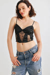 🖤 Item Features: Black, satin, lace, sleeveless, adjustable straps, v-neckline, smocked back, cropped length, semi-stretchy, see through, lined, sexy, elegant, hot, cool, trendy, stylish